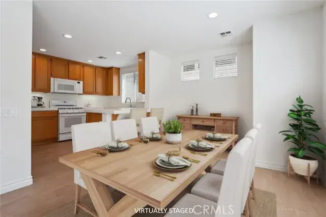 REDUCTION IN PRICE – BIGGER & BETTER THAN MOST! A RARE FIND in Casa Flores – a 55+ Gated Community! Move-in ready and Beautifully Maintained, this DETACHED 1,670 sq. ft. Home is Ideally Located on a Prime Interior Lot within the desirable Casa Flores community. Residents enjoy a Secure Gated Entrance, a Sparkling Pool and Spa, as well as Beautifully Landscaped Grounds with a Park and Picnic Area. Inside, the home offers a light-filled, Open Floor Plan with Soaring Ceilings, Plush Carpeting, and Tile Flooring. The Spacious Living and Dining Areas flow seamlessly into the Well-Equipped Kitchen, which features Recessed Lighting, ample cabinet space, and Quality Appliances – Perfect for everyday Cooking and Entertaining. The Main Level Primary Suite provides the ease of single level living and includes Vaulted Ceilings, a large walk-in closet, Sliding Glass Doors to the Backyard, and a Private Bathroom with dual sinks. Upstairs, a flexible Loft Area offers endless possibilities – Ideal for a Home Office, Media Room, or even a Potential Third Bedroom. Step outside to a peaceful, Private Backyard with mature fruit trees and a Spacious Patio Area, perfect for relaxing, dining al fresco, or hosting weekend BBQs. Additional features include Central Air and Heat, Dual-Pane Windows, Indoor Laundry, and an attached, Direct Access Two-Car Garage. Conveniently located Near Shopping, Dining, and easy Freeway Access, this Rare Opportunity in Casa Flores won’t last long.