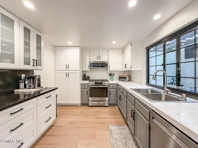 Fairways Patio Homes of Wood Ranch – Renovated and light-filled condo tucked behind the gates of this highly sought-after community. This welcoming home showcases new hardwood floors throughout, a beautifully updated kitchen with modern finishes plus new appliances, and a stunningly redesigned primary bathroom. The downstairs primary suite provides ease and privacy, while additional bedrooms offer flexible space for family, guests, or a home office.Fresh updates include new built-in storage and an enhanced back patio–ideal for entertaining or simply relaxing outdoors. Residents enjoy access to a sparkling community pool and are just moments from Wood Ranch Golf Course, neighborhood parks, and scenic walking trails.A perfect blend of style, comfort, and location–this home is a must-see!