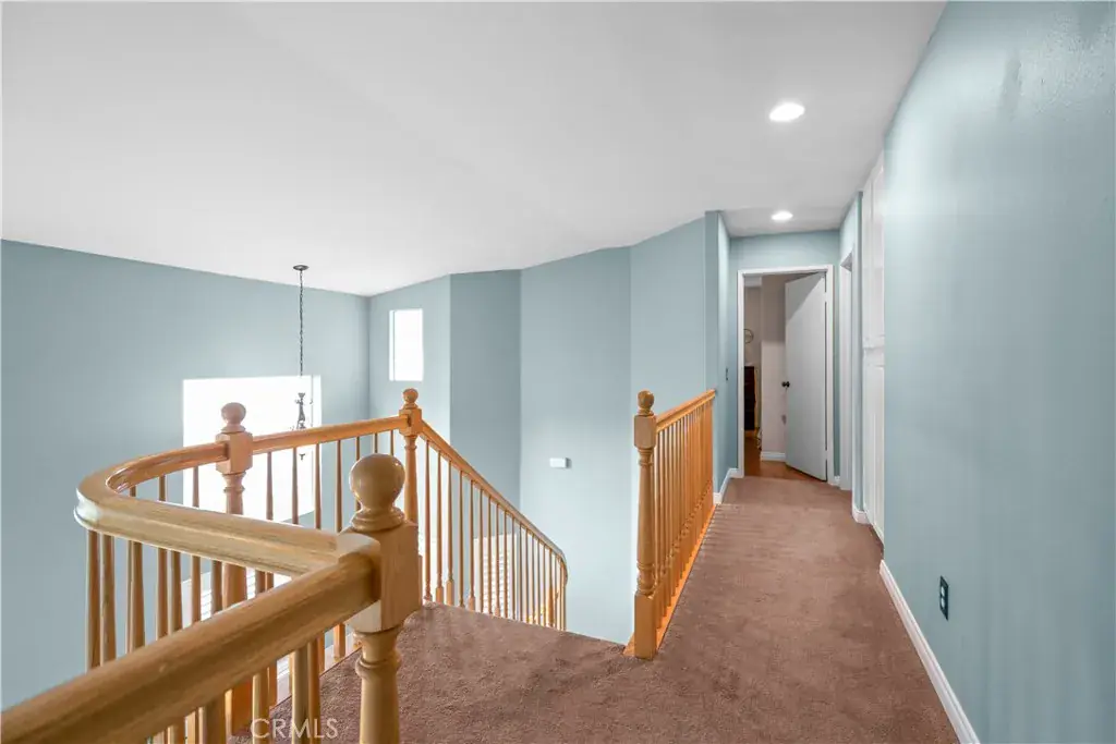 This beautiful Simi Valley property in the highly-sought-after niche of Newcrest Oaks offers a rare opportunity to invest and enjoy this excellent neighborhood. 1575 River Wood offers a thoughtful, highly functional floorplan. The four-bedroom/three-bathroom open-concept design with over 2000 square feet of living space has plenty of room for a large family. The kitchen with stainless steel appliances and quartz countertops is massive and provides a peninsula with seating for guests while entertaining. Porcelain tile and laminate flooring run throughout the entry, living room, den, and dining room. A wood burning fireplace with a gas starter adds warmth and comfort to the family room. One bathroom and bedroom are conveniently located downstairs. Three bedrooms are upstairs, two of which share a full bathroom. The primary bedroom offers a private retreat with great natural light. a full en-suite bathroom, and a walk-in closet. The exterior of the home is beautiful and offers entry to the oversized, attached, two-car garage. With no home or neighbor directly behind this property, the lush landscaping, koi pond, stone walkway and stamped concrete, covered patio create a private sanctuary for morning coffee and evening dinners. 1575 River Wood is a treasure in a coveted location. You are invited to come and see all that this home offers!