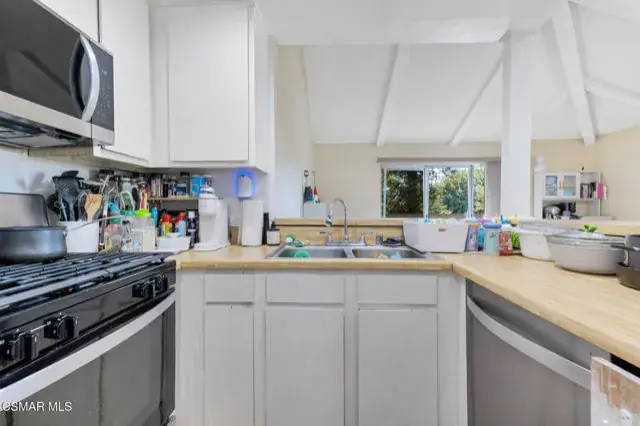 This charming 2-bedroom, 2-bath condo presents a fantastic opportunity for buyers and investors alike, offering timeless character and modern upgrades throughout. Spanning approximately 880 square feet, the home welcomes you with soaring vaulted wood-beam ceilings that fill the space with warmth and charm, creating a bright and inviting atmosphere. The thoughtful layout is both comfortable and functional, while also serving as the perfect canvas for your dream design.Enjoy quiet mornings or casual entertaining on the private balcony, or take advantage of the community’s well-maintained grounds complete with sparkling pool, relaxing spa, and convenient parking. Inside, you’ll appreciate the updated laminate flooring, stylish new tile and vanities in both bathrooms, and new track lighting that enhances the main living area. The kitchen is equipped with a newer dishwasher, range, and microwave–ready for both everyday meals and gatherings with friends.Perfectly situated near shopping, dining, and with easy freeway access, this condo offers an ideal blend of comfort and convenience. Whether you’re a first-time buyer looking to build equity, someone searching for a welcoming home in a prime location, or an investor envisioning a promising opportunity, this property is brimming with possibilities and ready to shine in its next chapter.