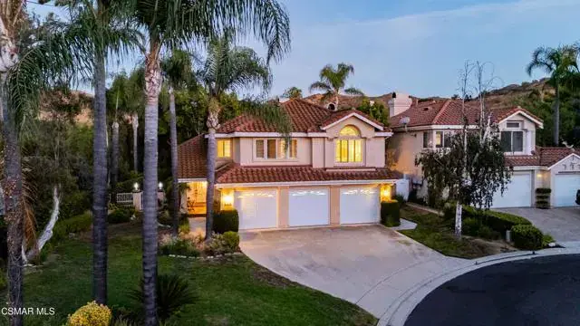Located at the end of a quiet cul-de-sac in the sought-after High Meadows neighborhood of Wood Ranch, this spacious 5-bedroom, 3-bathroom home offers 3,153 sq ft of living space on an 8,200 sq ft lot with lush landscaping and mountain views. All major systems replaced within the last 5 years! The well-designed floor-plan includes a downstairs bedroom and full bath, ideal for guests or multi-generational living. Upon entry, you’re welcomed by soaring ceilings and an abundance of natural light from numerous windows. The neutral interior features a formal living and dining room, and a separate family room with a fireplace. The kitchen is equipped with a newer stove, refrigerator, and dishwasher, tile countertops, light wood cabinetry, and a breakfast nook that opens to the family room. A separate laundry room is located on the first floor. Upstairs includes three generously sized guest bedrooms and a full guest bath with dual sinks and a shower/tub combo. The large primary suite features vaulted ceilings, a sitting area with a fireplace, and expansive views of the surrounding trees and mountains. The en-suite bath includes a walk-in shower, sunken tub, dual vanities, ample storage, and a walk-in closet. The private backyard offers a patio area, built-in BBQ, and storage shed–ideal for outdoor entertaining. The oversized 3-car garage includes built-in storage, with a portion converted into a functional office space. Additional features include plantation shutters throughout most of the home, a newer AC system, water heater, and updated downstairs bath with porcelain tile flooring. Enjoy access to nearby hiking and biking trails, parks, and the Wood Ranch Country Club. Conveniently located near shops, dining, the 23 freeway, and the Ronald Reagan Library. Homes on this street rarely come to market–don’t miss this opportunity.