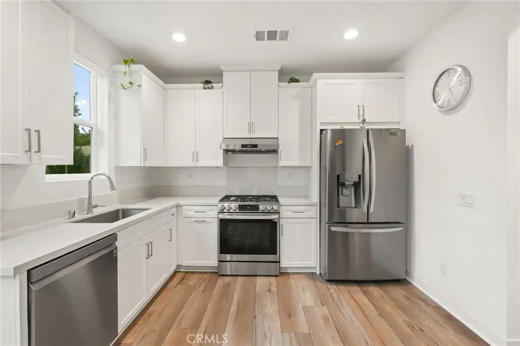 *PAID OFF solar panels* Luxurious 2023 End-Unit Townhome in the Heart of Simi Valley. Tucked away in a quiet, end-of-community location, this stunning 2023-built modern townhome offers the perfect blend of luxury and privacy. As a rare end-unit, it boasts open views, minimal shared walls, and close proximity to a serene park and walking path, all while being just minutes from the best of Simi Valley. Step inside to soaring ceilings, luxury vinyl plank flooring, and a bright open floor plan designed for modern living. The upgraded kitchen is a chef’s dream, featuring sleek quartz countertops, white cabinetry, and stainless steel appliances. The spacious living room is framed by custom shutters, picture-perfect windows, and a stylish ceiling fan, seamlessly connecting to the dining area and the expansive private backyard and side yard. Downstairs also includes a convenient powder room and direct access to a 2-car garage. Upstairs, you’ll find three generously sized bedrooms. The primary suite is a true retreat, offering a spa-like bath with a large walk-in shower, dual vanities, and a spacious walk-in closet. A separate laundry room upstairs adds everyday convenience. Additional highlights include: Tankless water heater, HVAC, and furnace – all just 2 years old. With its prime location, high-end upgrades, and attention to detail, this move-in-ready townhome is a rare opportunity in today’s market. Don’t miss your chance to own this exceptional property in one of Simi Valley’s most desirable communities!