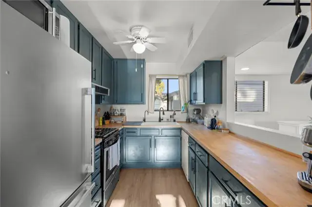 Stylishly Updated End-Unit Condo with Sunset Views in East Simi Valley’s Sandalwood Community…Welcome to this updated 2 bedroom, 1.5 bath end-unit condo with attached 2-car garage is located at the end of a quiet cul-de-sac in the desirable Sandalwood Community of East Simi Valley. Offering 1,025 sq ft of living space, this home combines comfort and style with vaulted ceilings, an open layout, and a private balcony with amazing sunset and mountain views. The interior has been tastefully refreshed with vinyl flooring, newer carpet, smooth ceilings with recessed LED lighting, fresh paint, and an interior laundry room. The kitchen showcases butcher block countertops, refreshed cabinetry with new hardware, a water filtration system, and is open to the bright and airy living space with a dual fuel fireplace. Both bathrooms have been upgraded with new toilets, while the main bath features a new vanity, beautifully tiled shower, and soaking tub. Additional highlights include spacious bedrooms with ample closet space and an airy floor plan filled with natural light and thoughtfully designed shelving to display books, photos, and your favorite decor. The Sandalwood community offers 2 sparkling pools, 2 spas, walking paths, and beautifully maintained grounds, all while being conveniently close to shopping, dining, parks, schools, and freeway access. The HOA fee generously includes water, trash, and exterior maintenance, including pools and spas. With its prime end-unit location and thoughtful upgrades, this move-in-ready home is a must-see!