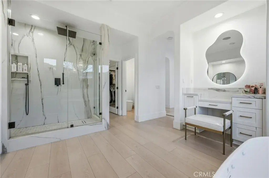 Stunning fully remodeled home offers modern elegance, thoughtful design, and exceptional comfort in one of the area’s most desirable neighborhoods. Renovated from top to bottom, the home features polished concrete floors throughout the first level, creating a sleek, contemporary feel, while the stairs and entire upper level showcase beach-style laminate flooring that adds warmth and a relaxed coastal vibe. The designer kitchen, beautifully updated bathrooms, and stylish bedrooms are accented by custom wall finishes, modern lighting, and stainless steel appliances, making the home ideal for both everyday living and entertaining. The expansive layout includes a three-car garage and flows seamlessly to a private backyard oasis with a pool and spa. The impressive primary suite serves as a true retreat, offering its own reading area, a walk-in closet, and a spa-inspired bathroom with dual sinks, a dedicated vanity area, and a freestanding soaking tub, along with a private balcony overlooking the backyard. Conveniently located near the Ronald Reagan Freeway (118 Freeway), parks, shopping, dining, and everyday conveniences, this turn-key property perfectly blends modern luxury, functionality, and an unbeatable Simi Valley location.