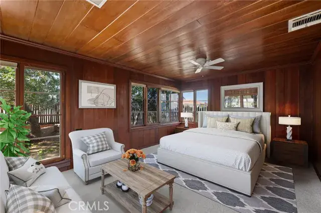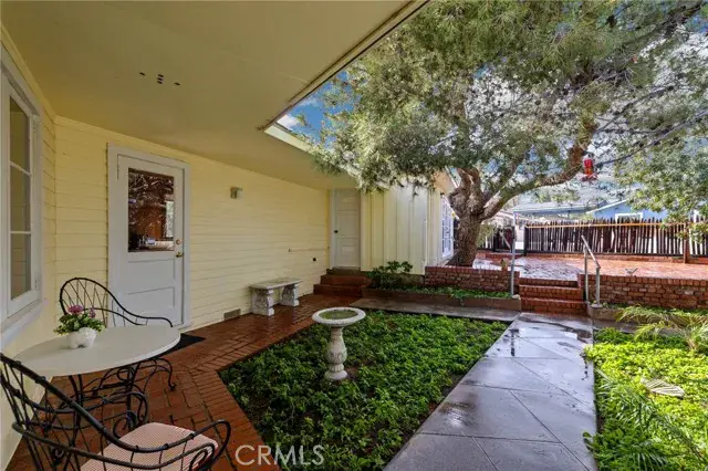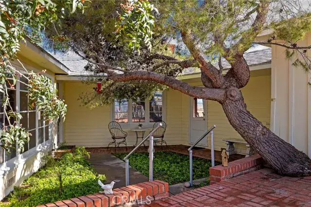 Discover a home overflowing with character located in Taft. This 1631 sqft 3 bedroom, 1.75-bath home includes a standout bonus featuring a vacant lot next door, included in the sale—providing valuable additional space ideal for extended outdoor living, a pool, or future expansion. Inside discover warm wood-accented ceilings that enhance the cozy atmosphere and pair beautifully with the views from the living room. The spacious layout includes a bright living area and a cozy dining space connected by a double-sided brick fireplace, adding charm and comfort to both rooms. Enjoy the sunlit primary room overlooking the tranquil courtyard with brick pathways, and peaceful garden views. French doors and large windows throughout bring in abundant natural light and create a seamless indoor-outdoor feel. A home filled with charm and opportunity, waiting for the right buyer to bring its next story to life.