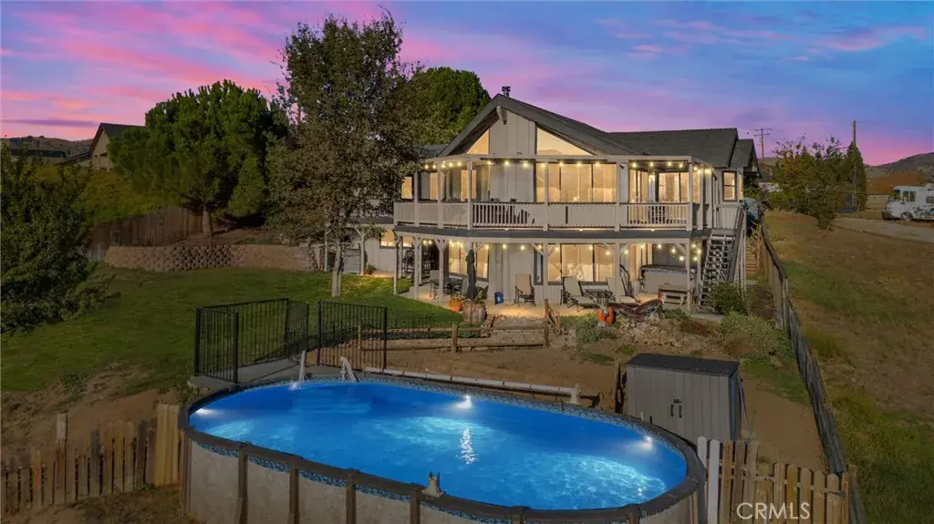 Enjoy an easy side entrance to the backyard, perfect for hosting gatherings and taking advantage of the outdoor spaces. The lower level opens to a large covered patio and an above-ground pool, ideal for enjoying the Tehachapi sunshine. Outside, the expansive deck provides stunning sunset views over the lake and rolling hills. With its peaceful setting, abundant natural light, and versatile layout, this property perfectly combines comfort, privacy, and natural beauty—right in the heart of Golden Hills.