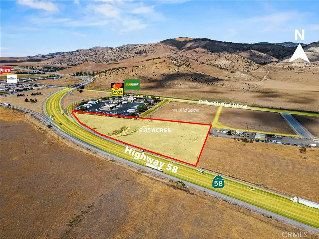 Vacant land ready for commercial development on 6.85 acres with excellent visibility along Highway 58 in Tehachapi. Positioned directly next to Love’s Travel Center, this parcel is zoned C-2 (General Commercial), allowing flexibility for a wide range of uses. Potential opportunities include gas station, travel center, truck stop, EV charging station, hotel, warehousing, logistics, light manufacturing, and contractor yards. Utilities are located nearby for convenient future connections. Buyer to verify zoning, permits, and all aspects of development during due diligence. Existing studies and reports are available upon request.