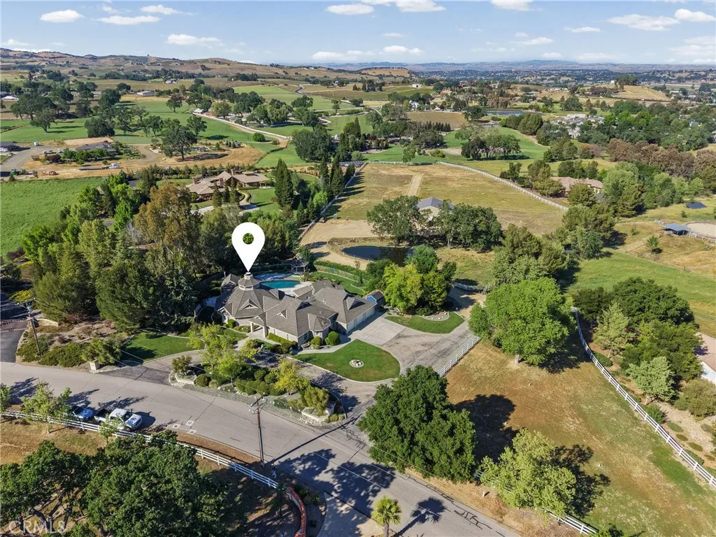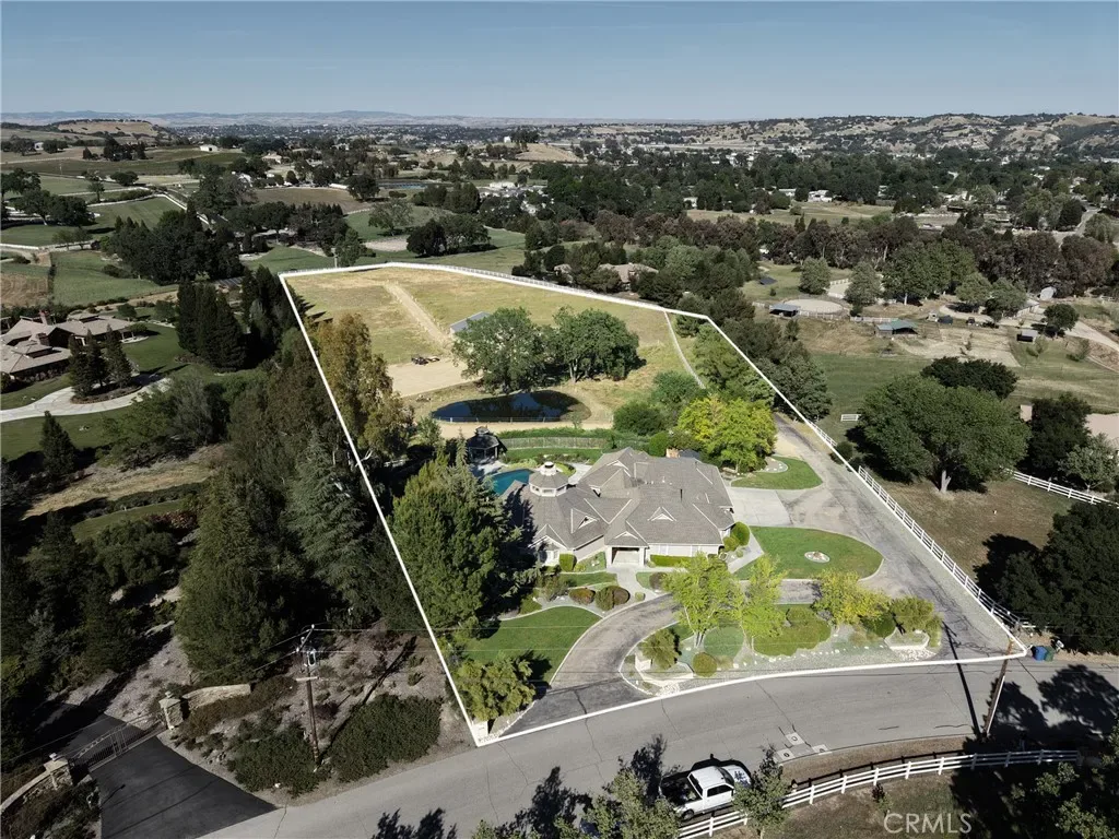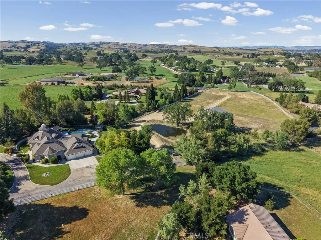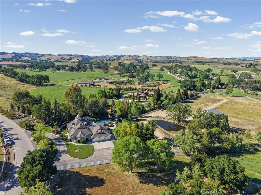 Located in the highly sought-after Peterson Ranch community of west Templeton, this exceptional 5.5 acre estate offers a rare blend of privacy, scale, and sweeping vineyard-studded views. The beautifully newly remodeled 3,390± sq ft custom home features 4 bedrooms and 5 bathrooms, with an open, light-filled design that captures the surrounding landscape from nearly every room. A dramatic rotunda-style great room with soaring wood-beamed ceilings and a statement fireplace anchors the home, seamlessly connecting formal living and dining spaces to the gourmet kitchen; perfect for both everyday living and entertaining.