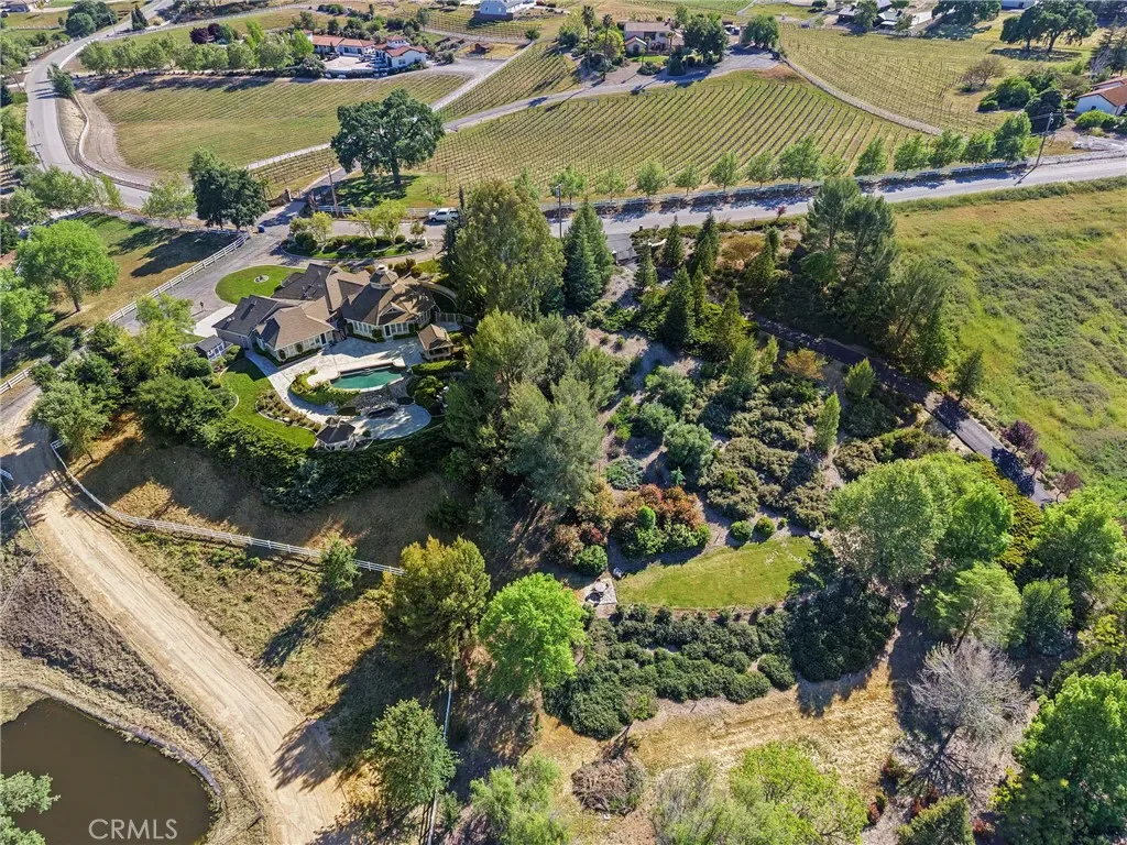 Designed for true indoor-outdoor living, the property features a resort-style pool and spa with vanishing edge waterfall, a 150 sq ft pool house with outdoor cooking area and gazebo, and expansive entertaining spaces set against breathtaking Central Coast views. The lower acreage offers exceptional versatility with a man-made irrigation pond, a new 3,000 sq ft barn/shop built in 2022 with A/C, plumbing and electricity ideal for hobbyists, and ample room for agricultural or equestrian use. Served by TCSD water plus a private well for irrigation, and surrounded by landscaped, fenced grounds, this property embodies refined wine country living along the Templeton Gap. This stunning custom home is an absolute must see!