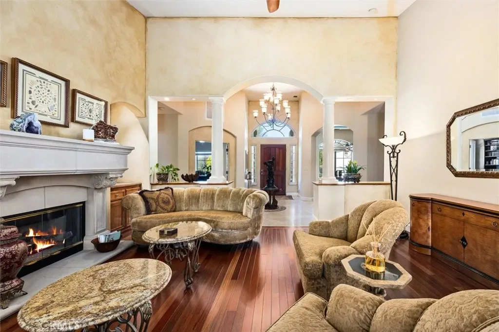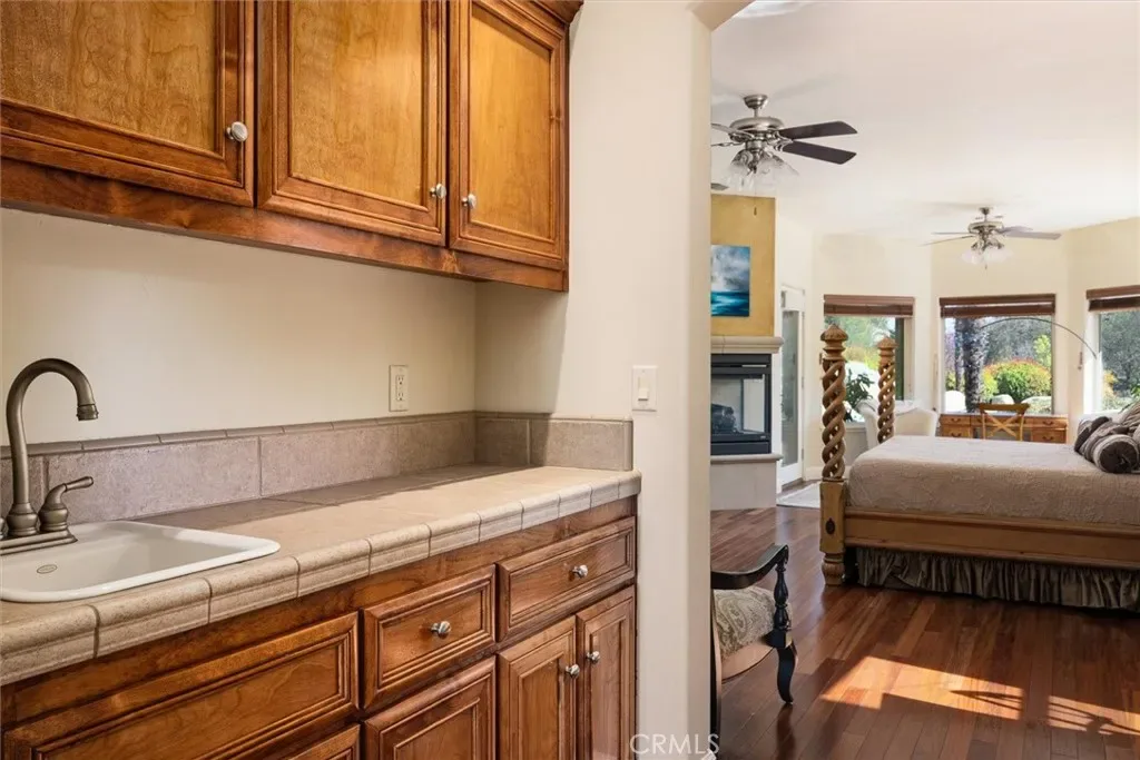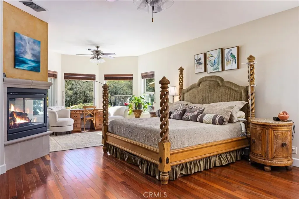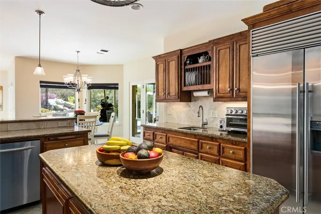 Spectacular home in the exclusive Spanish Lakes gated community. The square footage totals 4140sf that includes the additional covered patio that is enclosed by 8’ X 40” expansive glass doors that frame the gorgeous backyard pool and waterfall; with its own heating unit and gas BBQ, this room can be enjoyed year around. The entry courtyard with its graceful fountain is a great place to sit back and enjoy the countryside. This home is a truly versatile and elegant home. The floor plan is plentiful yet personal, great for entertaining. Off the tiled grand foyer is a spacious office with double door entry. The formal dining room opens to the living room with a grand fireplace. Gorgeous wood flooring. The half bath is conveniently located down the hall. The beautiful and especially spacious Owner’s Suite is located on the opposite wing from the other 3 bedrooms providing privacy and peacefulness. The fireplace and bay window add charm, with a French door out to the patio, views of the pool and lush landscape. The bath has 2 separate vanities. 2 generous closets. The kitchen work space is amazing with 2 sinks and an abundance of counter space and cabinetry. Sub-Zero refrigerator/freezer. The Sub-Zero wine/beverage refrigerator is always a plus, cooling over 140 bottles! The kitchen opens to the dining nook & great room with a cozy fireplace. 2 guest bedrooms share a bathroom, with the 3rd being an ensuite bedroom. A spacious laundry room with a sink and lots of storage gives this room the nice option of a Butler’s Pantry. Central vacuum system, water softener and water osmosis system. Dual zone heating/air systems. Tankless water heater. The 3 car garage is extra deep, with an attic space large enough to stand! The backyard is very private with one side bordering dedicated open space complimenting the mature landscaping around the infinity pool which creates a true oasis. It wouldn’t be complete without the outdoor shower! There is an outdoor kitchen, firepit, stone patio and walkways. Owned Solar for the home with a separate owned solar for the pool. The Spanish Lakes private community offers walking trails and a park on one of the three lakes where neighbors meet for socials. This community has a rural feel but is minutes from Downtown Paso Robles and Templeton.