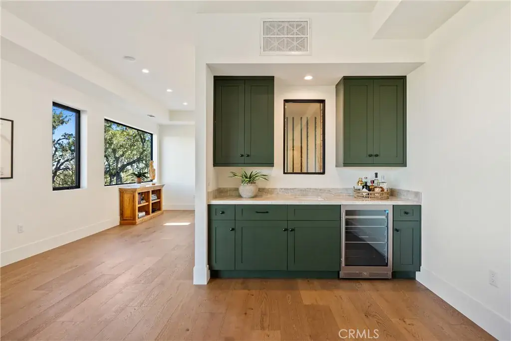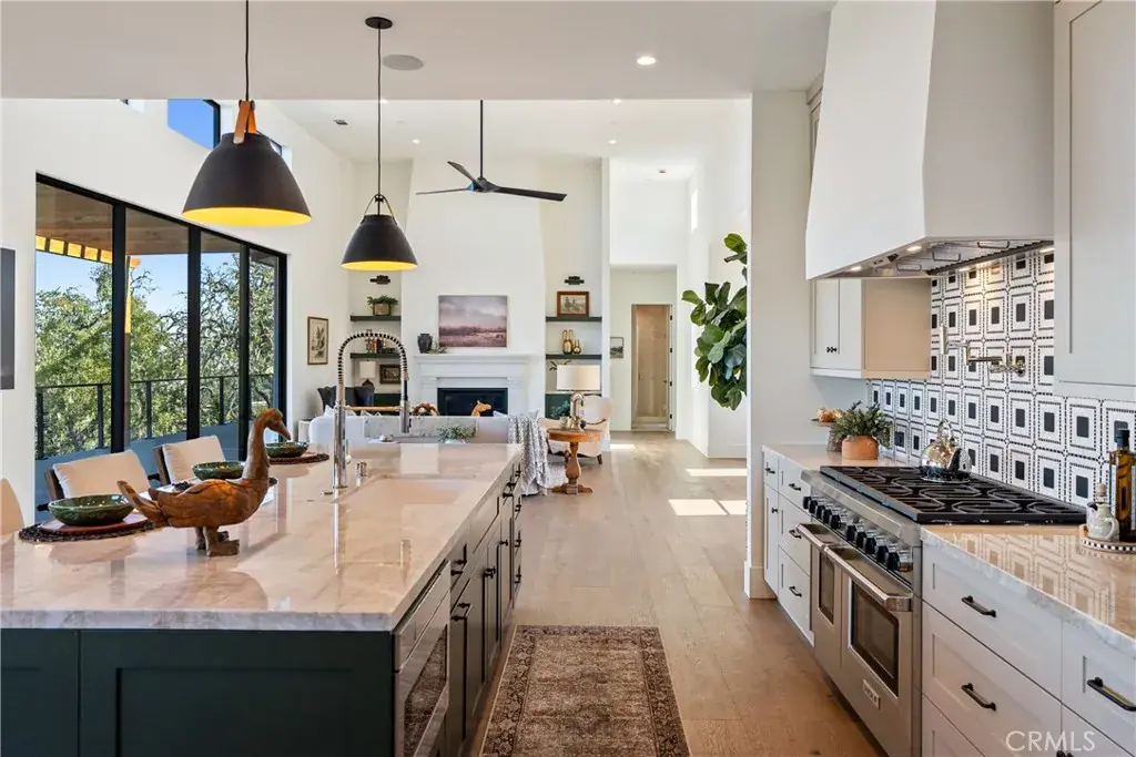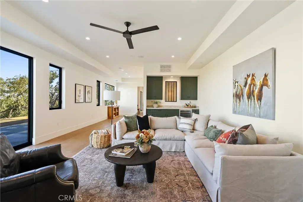 Experience refined living within the exclusive gates of Santa Ysabel Ranch Estates in this newly constructed 3,575± sq. ft. residence that exemplifies sophistication, craftsmanship, and timeless design. Thoughtfully designed across two stories, the home features 3 bedrooms, 4 bathrooms, and a 3-car garage, offering a seamless blend of luxury and functionality. The interior showcases limestone flooring, quartzite countertops, and custom tile work throughout, with high-end finishes and fixtures that elevate every space. The gourmet kitchen is a culinary masterpiece, featuring a Thermador refrigerator, microwave drawer, wine fridge, and custom cabinetry complemented by a striking tile backsplash. The adjoining living room centers around a beautiful fireplace, creating a warm and inviting space for gathering. Entertain or unwind with ease, enhanced by a built-in audio system that extends through the kitchen, living room, office, and back patio. Outdoor living is equally inviting, with a covered deck and private front and backyard courtyards offering peaceful views of the surrounding natural landscape. Additional highlights include a temperature-controlled wine cellar, epoxy-finished garage floors, and an efficient solar system for sustainable living. Photos have been digitally altered.