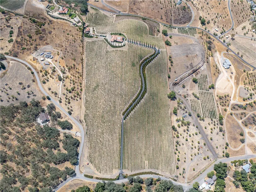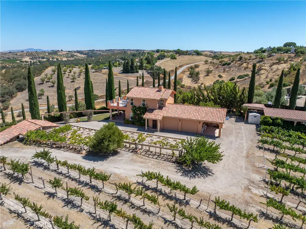 A captivating wine country estate with income-producing opportunities in Templeton. Set on 38± acres with 25± acres of premium Cabernet Sauvignon and Merlot under contract to Daou, this property offers multiple revenue streams through short-term rentals, private events, and viticulture. Two custom homes span approximately 5,000 sq. ft. The luxurious Tuscan-inspired main residence features 4 bedrooms and 4 bathrooms, while the second home, built in 2000, offers 2 bedrooms and 1.5 bathrooms. Ideal for guests, caretakers, or vacation rental use. Both homes are on a single parcel, with a second parcel included in the sale. Gated and private, the grounds feature sophisticated design details, hand-painted murals, and remarkable vineyard views. Multiple patios and fountains provide a tranquil setting for elevated indoor-outdoor living. Previously operated as an in-demand wedding venue and short-term rental, this is an extraordinary chance to experience the best of wine country living while building long-term value in Templeton.