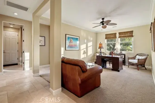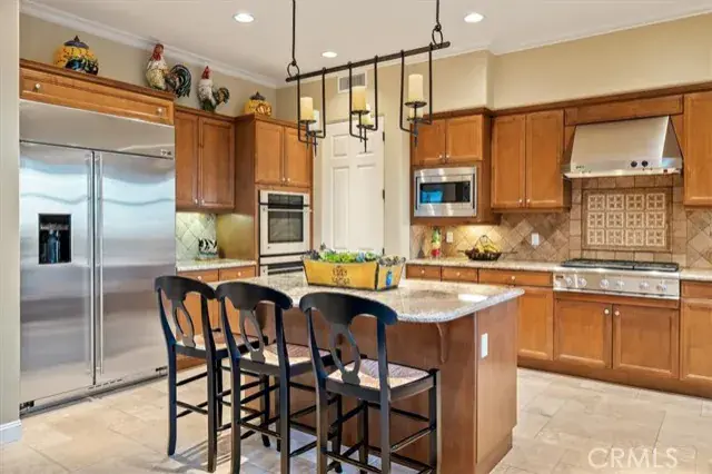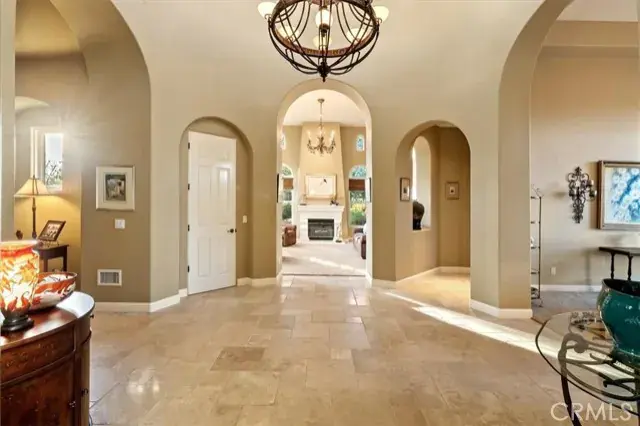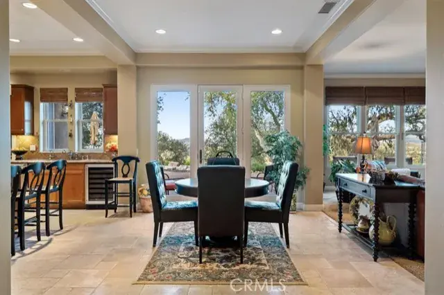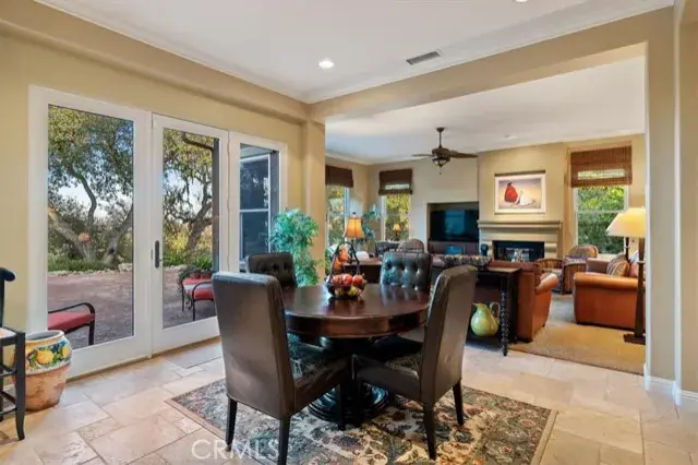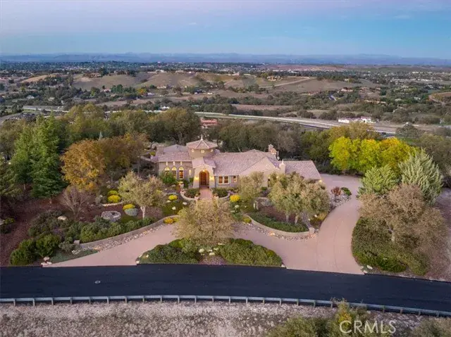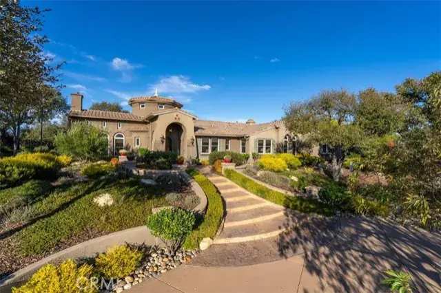 Experience refined Central Coast living in this stunning 4,146± sq. ft. Spanish Colonial estate, perfectly positioned on a private 3± acre parcel within the exclusive gates of Santa Ysabel Ranch. Enjoy sweeping 180° views of vineyards and mountains from nearly every room. This 4-bedroom, 3.5-bath home welcomes you through a grand rotunda entry with soaring ceilings, custom lighting, and travertine flooring throughout. The formal living and dining rooms feature tall Anderson windows framing breathtaking vistas and a cozy gas fireplace. The gourmet kitchen is equipped with GE Monogram stainless appliances, including a six-burner range, double ovens, wine fridge, and granite countertops with maple cabinetry. The adjoining family room and casual dining area create an inviting space for entertaining with seamless indoor-outdoor flow.
