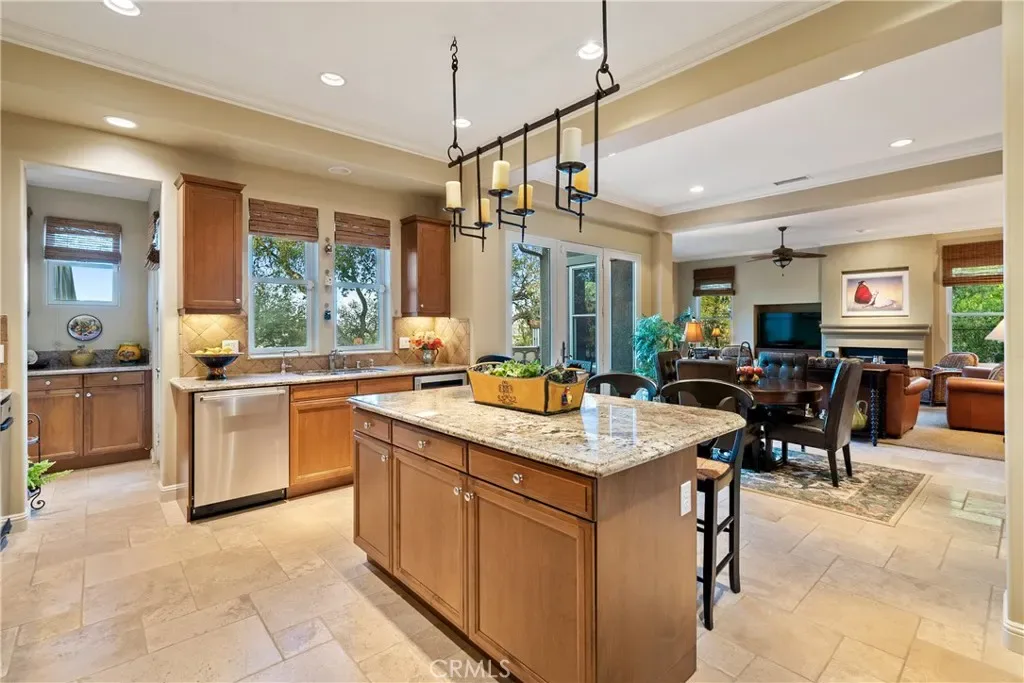 Experience refined Central Coast living in this stunning 4,146± sq. ft. Spanish Colonial estate, perfectly positioned on a private 3± acre parcel within the exclusive gates of Santa Ysabel Ranch. Enjoy sweeping 180° views of vineyards and mountains from nearly every room. This 4-bedroom, 3.5-bath home welcomes you through a grand rotunda entry with soaring ceilings, custom lighting, and travertine flooring throughout. The formal living and dining rooms feature tall Anderson windows framing breathtaking vistas and a cozy gas fireplace. The gourmet kitchen is equipped with GE Monogram stainless appliances, including a six-burner range, double ovens, wine fridge, and granite countertops with maple cabinetry. The adjoining family room and casual dining area create an inviting space for entertaining with seamless indoor-outdoor flow.