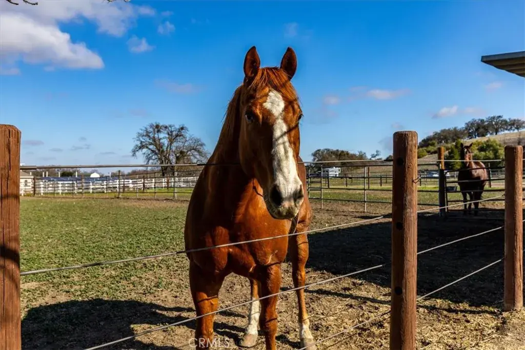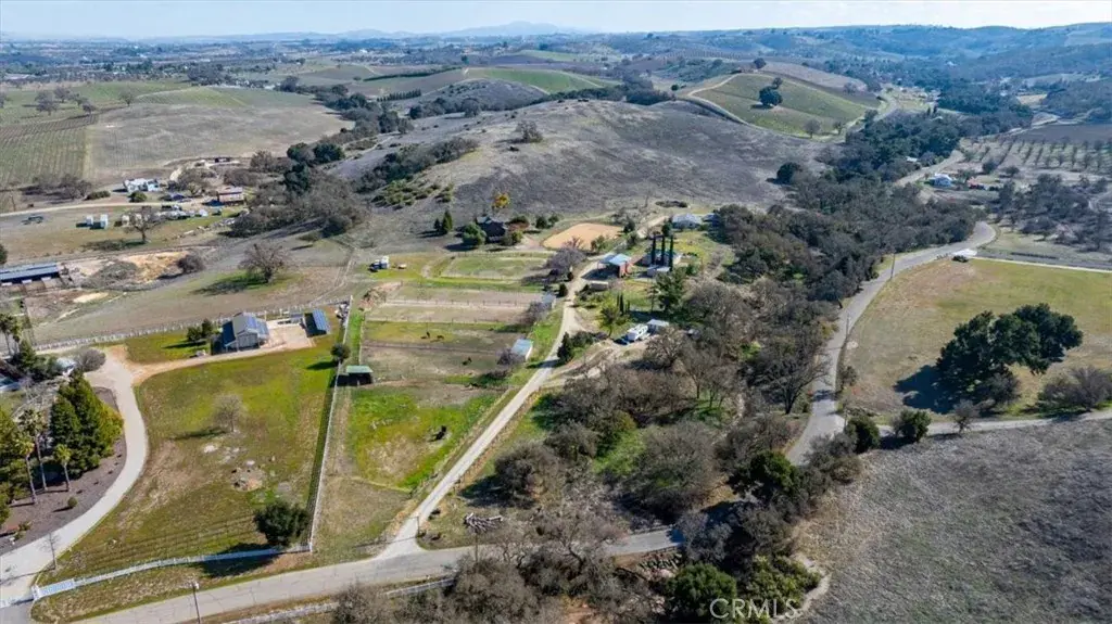 This nearly 16-acre piece of paradise offers endless possibilities for development, thanks to its desirable terrain featuring plenty of flat, usable areas. It’s perfect for you and your extended family to create your own family compound. Conveniently located just off the beautiful wine trail on El Pomar, the property is surrounded by stunning vineyards and is only minutes away from both Templeton and Paso Robles. The property includes a stunning 2,360 sq ft log home, completed in 2023, featuring three bedrooms, three bathrooms, and a beautiful office. The exterior was just pressure washed, re-caulked, stained, sealed and painted the exterior siding, porches, balcony, and patio. A second original 1,300 sq ft home built in 1980, currently used as a duplex. Additional amenities include two RVs with full hookups, a dump station, a modified 6-stall Port-a-Stall barn with runs, a 2-stall barn with turnouts, a 1,200 sq ft shop/hay barn with a concrete floor, a 150′ x 100′ arena, solar systems and 7 pastures—6 of which have shelters. There’s also a storage container for added convenience.