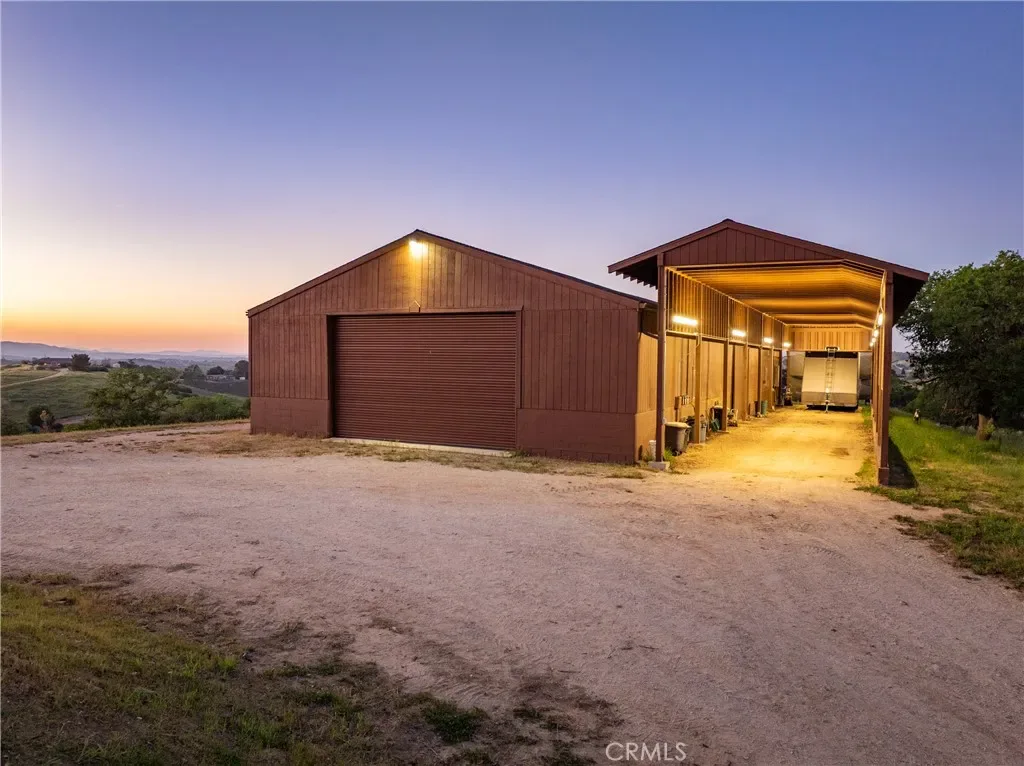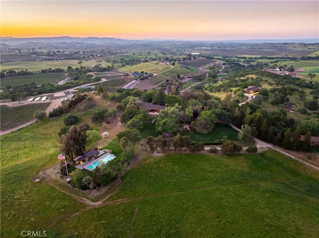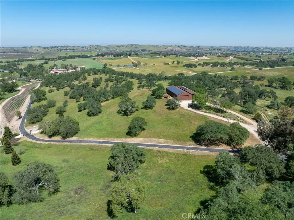 Set behind a gated, paved entry, this exceptional Templeton property offers a rare combination of expansive views, usable acreage, and thoughtfully designed spaces for entertaining. The grounds are beautifully landscaped, creating a sense of privacy while framing the surrounding countryside and capturing the natural beauty of the area. The single-level main residence (approx. 4,234± sq.ft.) is designed for both everyday living and large-scale gatherings, featuring a spacious layout with a formal dining room, living room, and a welcoming family room anchored by a rock fireplace. An additional entertainment room with a brick fireplace and bar area provides a perfect setting for hosting. The kitchen is positioned at the heart of the home, complete with a generous center island and windows overlooking the grounds and outdoor living areas. The primary suite offers a private retreat with patio access, a soaking tub, and separate shower, while three additional guest bedrooms, an office, bonus room, and laundry room provide flexibility and function. Vaulted ceilings throughout enhance the sense of space and natural light. Outdoor living is a true highlight, with a covered patio, built-in fireplace, and BBQ area designed to take full advantage of the views and open landscape. The property also features a pool and dedicated outdoor kitchen area, complete with its own bathroom, ideal for entertaining and enjoying the Central Coast lifestyle. Additional improvements include a three-car garage at the main house, a substantial 40′ x 100′ workshop, and a separate 2-bedroom, 2-bath guest house with its own entrance and garage, offering privacy for guests or extended living. The property is equipped with owned solar panels located on the barn, feeding both the meter servicing the well, barn, and guest house, as well as the meter servicing the main house and pool. A 60kW generator is hardwired to the property and sized to power all improvements simultaneously, providing added efficiency and reliability. A well-rounded property where views, space, and lifestyle amenities come together, creating an ideal setting for both relaxation and entertaining in the heart of Templeton.