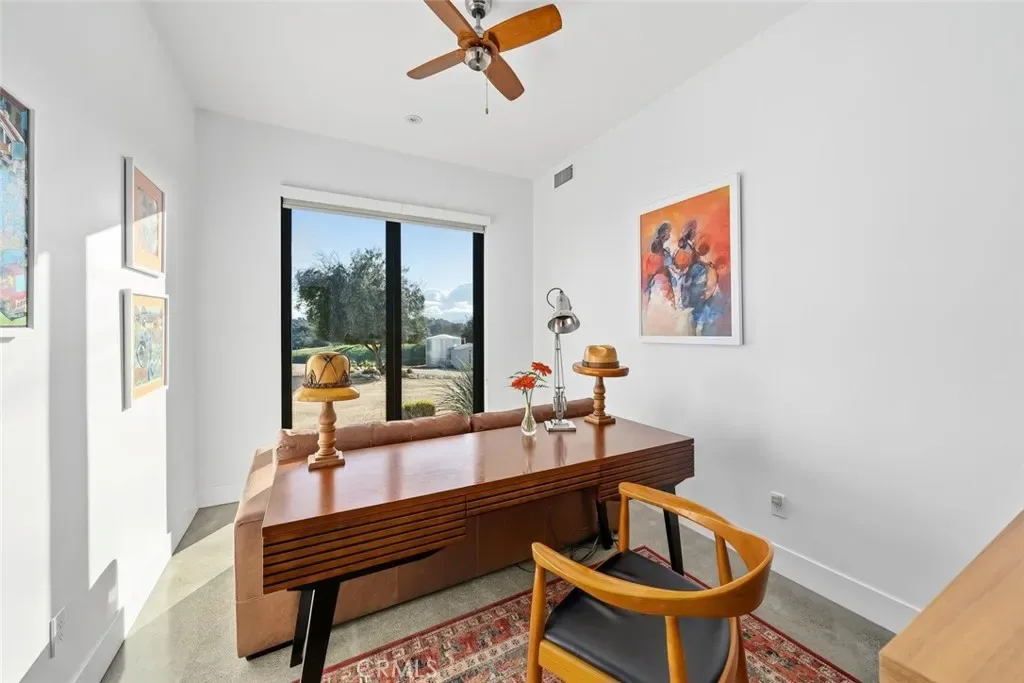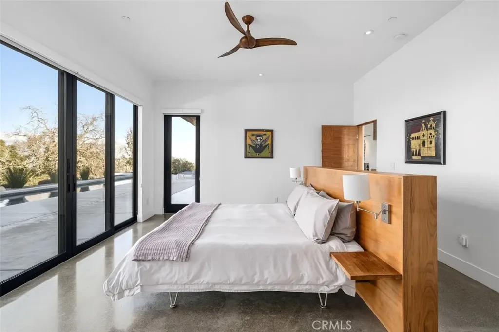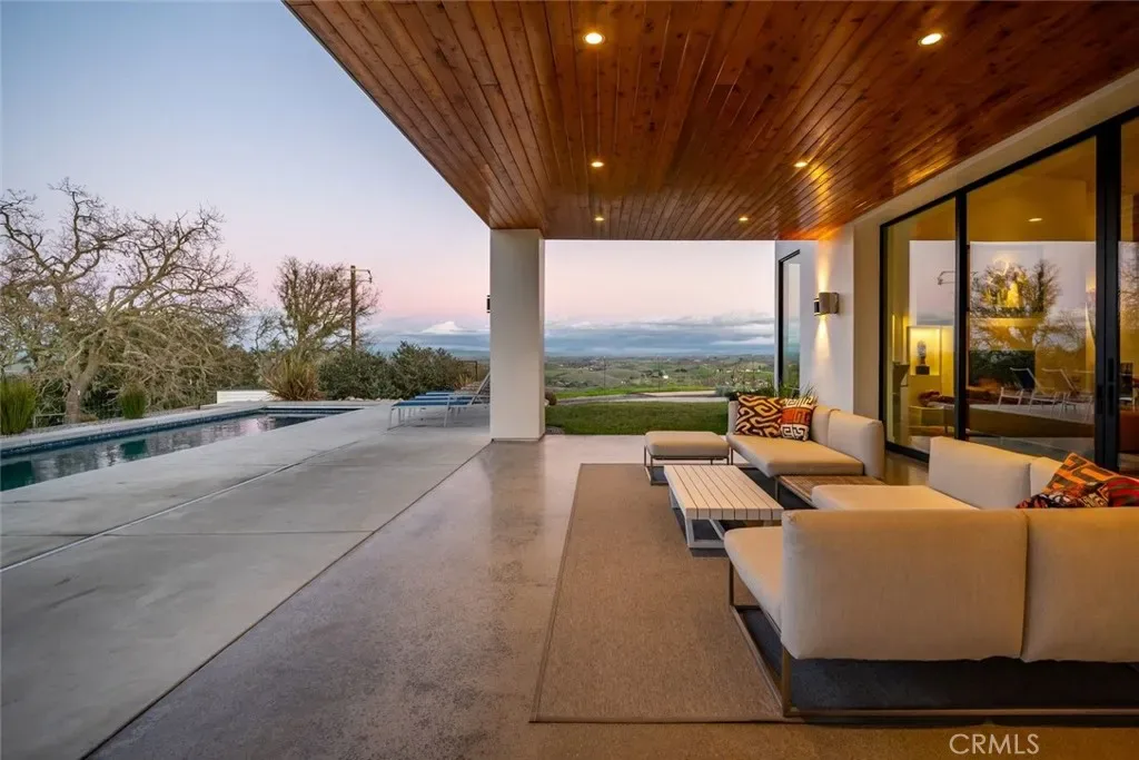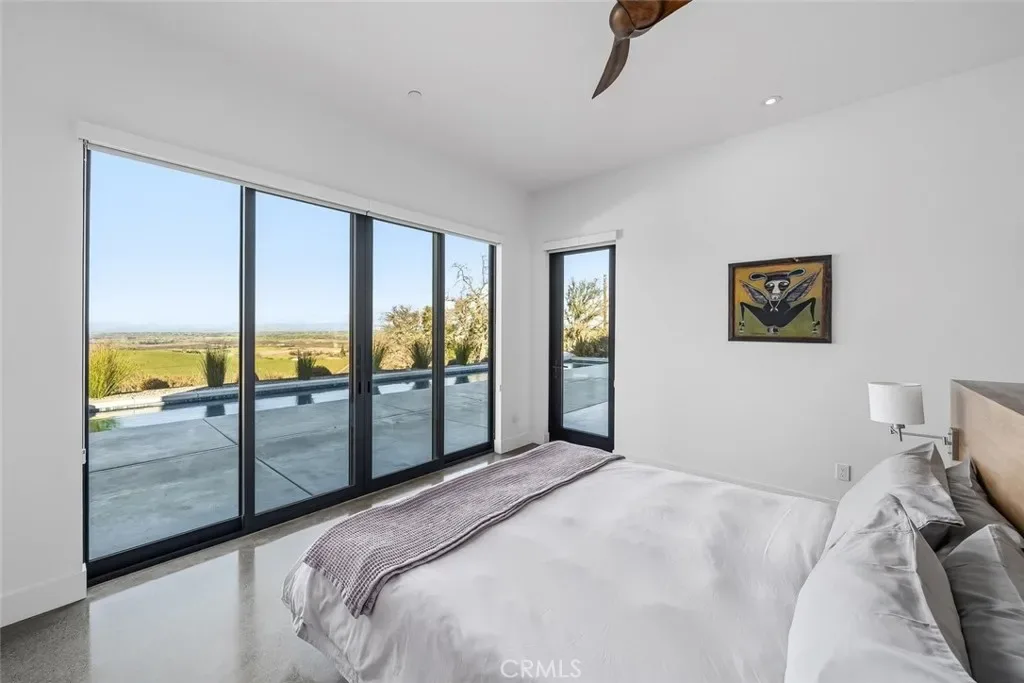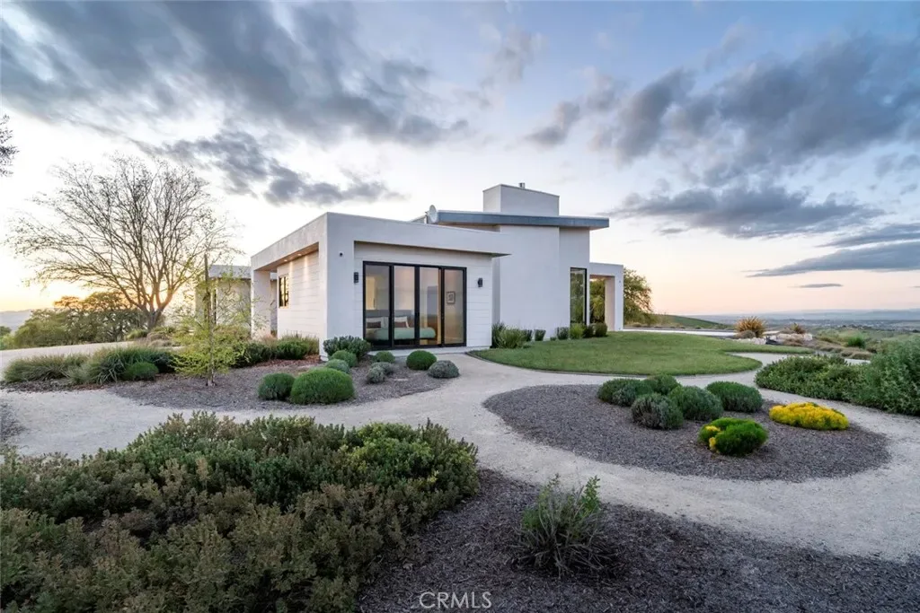 Award-winning architecture meets the soul of California’s Central Coast in this exceptional estate by Andrew Goodwin Designs, recipient of the 2020 AIA California Central Coast Award for excellence in design and execution. Privately situated at the end of a scenic country lane, the El Pomar Residence is a rare convergence of architectural distinction, natural beauty, and refined livability, balancing serenity with sophistication and lifestyle with income potential. The 2,727 square foot main residence offers 4 bedrooms and 3 bathrooms, defined by open, light-filled spaces and framed views of the rolling Paso Robles hills. Thoughtful craftsmanship is evident throughout with custom millwork, radiant heated floors, and curated finishes. A separate 1,092 square foot guest house features two bedrooms and one bathroom and operates as a fully permitted, high-performing short-term rental, complete with washer/dryer, dishwasher, and contemporary gas fireplace. Designed for beauty and efficiency, the solar-powered estate delivers near net-neutral electric costs and is supported by a single well and electrical system for both residences. The main home includes 4-zone HVAC, tankless water heater, RO water system, Dekton countertops, Bosch induction range, Bosch steam and convection microwave oven, Bosch warmer drawer, Electrolux refrigerator, a 650-bottle wine cellar, and an integrated indoor-outdoor sound system. Outdoors, a 60-foot lap pool anchors expansive decking and natural landscapes for seamless indoor-outdoor living. The property pioneers a unique agricultural legacy as the first commercial U.S. planting of the rare Italian varietal Nero di Troia, cultivated in partnership with Giornata, a premium Italian winery. Ownership includes annual complimentary wine allocation and seven additional acres of vineyard-ready land with prized calcareous soils. Key highlights include award-winning architecture, end-of-road privacy with panoramic vineyard and valley views, two residences on a single metered solar system, multi-generational living potential, full insurance including liability and earthquake coverage, proven rental income, premium vineyard acreage, proximity to regional and private airports, a 60-foot lap pool, radiant heated floors, and a turnkey lifestyle with furnishings available. Just 15 minutes from downtown Paso Robles and 30 minutes from San Luis Obispo Airport, this is a rare offering where design, agriculture, income, and lifestyle converge.