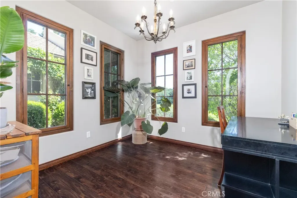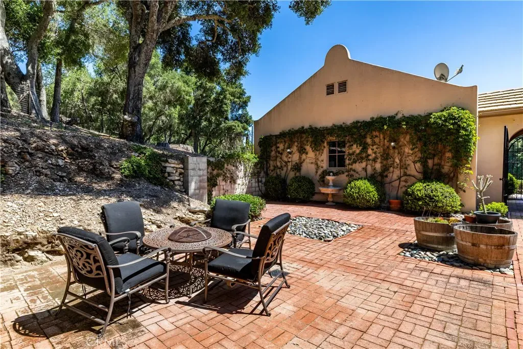 French doors lead you to the back of the home, where you’ll take in sweeping views of the surrounding acreage—offering a true sense of serenity and connection to nature. A charming, extremely private courtyard provides a peaceful outdoor retreat—perfect for relaxing, entertaining, or simply enjoying the quiet surroundings.