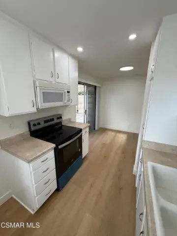 Single story Oakbrook townhome with no one above you below you or to the side of you. Featuring new paint updated flooring (no carpet!) New dishwasher and new slide in range, recessed lighting in living room and kitchen and spacious laundry room with ample additional storage. Additionally there is an oversized patio, 2 parking spaces, 1 space is covered, Community pool/spa. Great neighborhood in central Thousand Oaks location close to Markets, dining and parks!