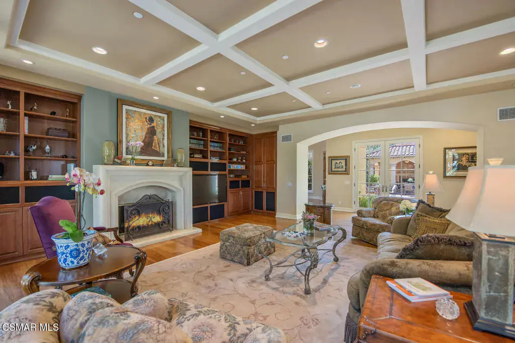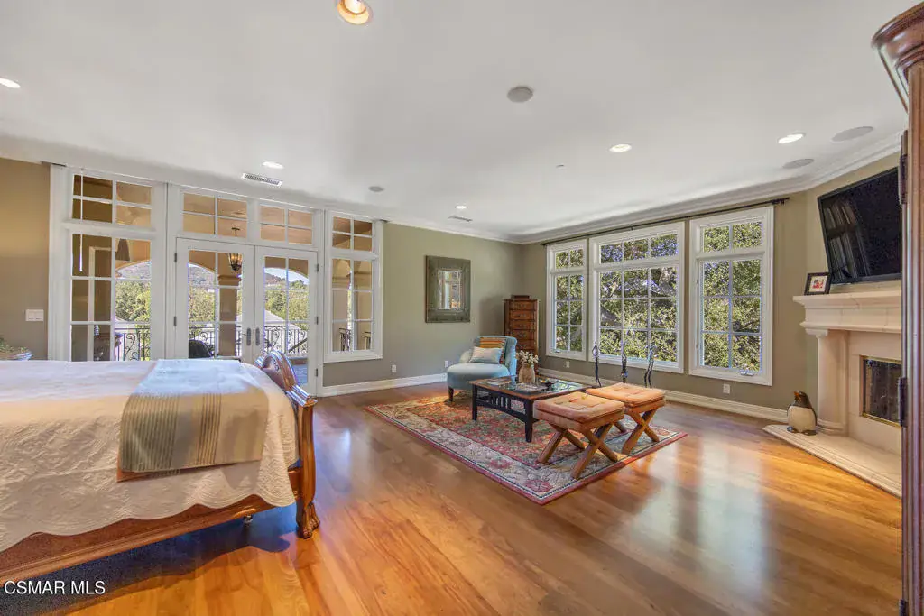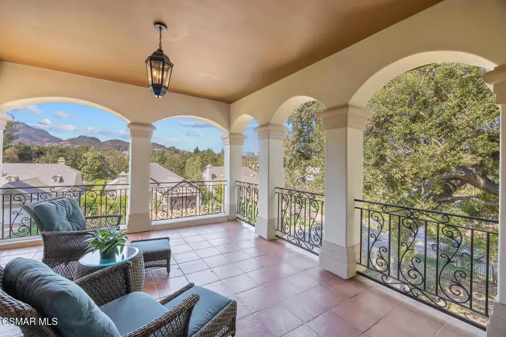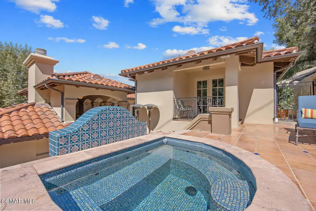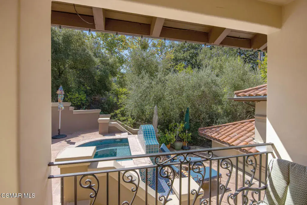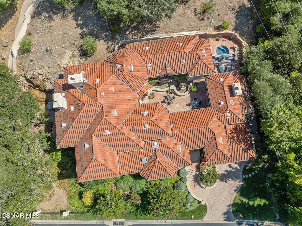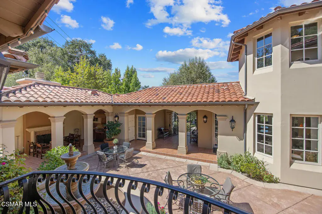 Located behind the 24/7 guard gates of prestigious Lake Sherwood, this stunning custom Spanish estate is a rare offering with NO HOA dues. Designed with luxury living in mind, the 4,248 sq ft home is newer, built in 2002, and is a masterpiece of elegance and warmth. A welcoming courtyard sets the tone, complete with a soothing fountain, covered patio, fireplace, and a built-in BBQ. Entering the home you will be impressed by the grand rotunda entry with a wrought iron curved stairway. The home boasts four spacious bedrooms, all of which have en-suite bathrooms. The enormous great room features a wall of windows and French doors that open to a large patio overlooking views of the lake, majestic oak trees, and a waterfall that cascades directly from natural rock. Both the great room and the primary bedroom feature dramatic coffered ceilings and large custom fireplaces. The chef’s kitchen is a dream, designed with two islands, dual sinks, dual dishwashers, granite counters, and top-tier stainless appliances. The formal dining room opens seamlessly to a veranda for indoor-outdoor entertaining. Every bedroom is an ensuite, offering large baths and spacious closets. The primary is exceptionally spacious and features an elegant private patio reminiscent of an Italian villa, dual walk-in closets, and a large bath complete with soaking tub and oversized shower. Outdoors, you can take unwind in the relaxing spa surrounded by mature trees. Enjoy multiple patios which invite relaxation among the wooded grounds which cover a fully fenced 3/4 of an acre, creating a sense of peace and seclusion. The 4-car tandem garage, is thoughtfully designed with a split AC system, a Tesla EV charger and a car lift. This home also offers a newer three zone HVAC system and TONS of storage. Living behind the gates in Sherwood means access to the private park and private playground plus rights to use the lake (boating, swimming, fishing and kayaking). Behind the gates there are two country clubs, one with a world-class golf course. A rare opportunity to own an elegant custom home with no HOA dues behind the gates of Lake Sherwood..