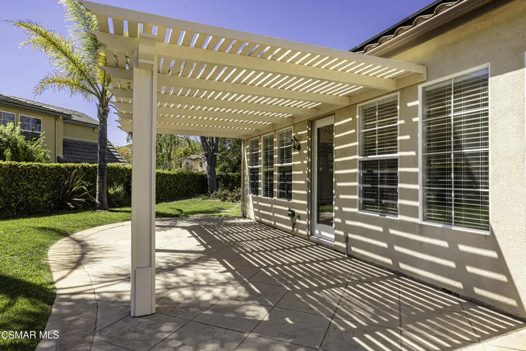 Enter into the 24 hour guard gated community at Woodridge Estates and you step into a calm, lush setting surrounded by beautiful hiking trails and stunning mountain views everywhere. This beautiful newer single-story home with an additional loft area is a true find. This 3,100 sq. ft. home features owned solar panels, an oversized grassy yard, a perfectly placed in ground spa, with a stunning location on the view side of the street. The primary suite with one potential bedroom is on one side of the house with the other two bedrooms with a jack & jill bathroom and powder room on the other. The spacious living space offers a formal living room, office/study area, formal dining room, and a large kitchen that opens to the family room. The high ceilings of this newer home make the home feel even larger than 3100 sq. ft.. The lot size is unusually large for Woodridge Estates and offers so many enjoyment options. Centrally located in Thousand Oaks close to schools, dining and shopping.
