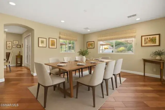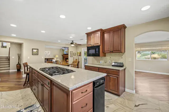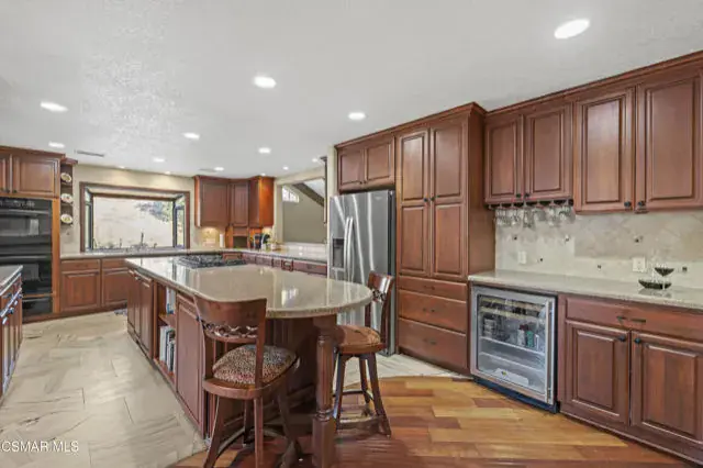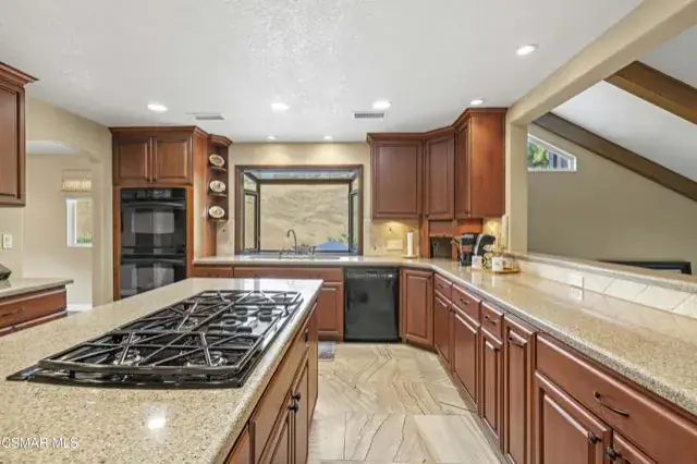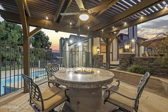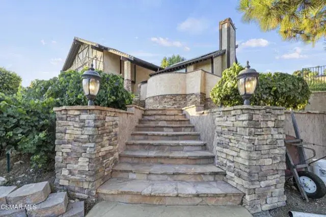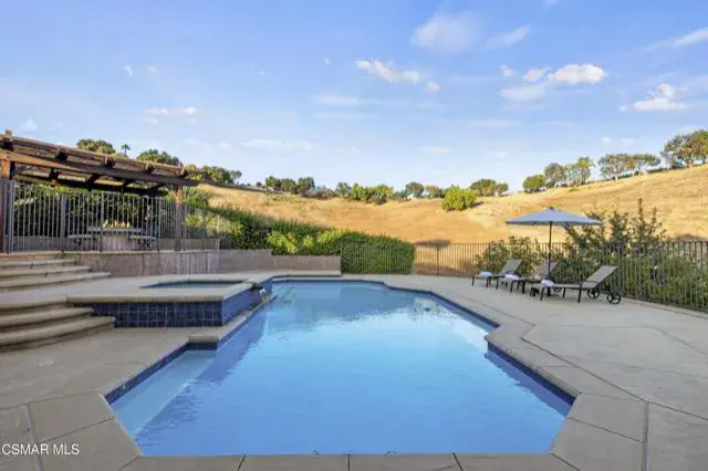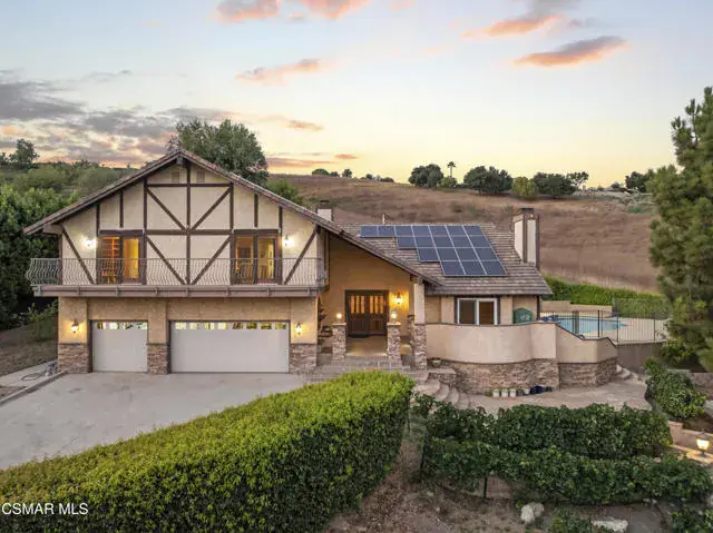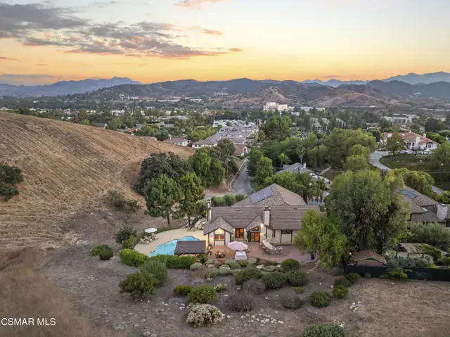 Welcome to 554 Lone Oak Dr, your own private oasis in the hills of Thousand Oaks. Drive along the tree lined street and up the long private driveway and come home to this wonderful 4 bedroom, 4 bathroom, 3,469 square feet retreat. Walk through the double door entry into the open and bright foyer which leads you into the living room with high ceilings, wood beams, fireplace and outdoor access to the front patio. Up the stairs from the living room is the open family room with fireplace connected to the kitchen and dining room. The kitchen has been remodeled with a large island, trash compactor, double ovens, large sink with bay window with pool and hill views. Through the hall and up the stairs are the bedrooms. Enter through the double doors into the massive primary suite with additional nook, walk in closet, another standard closet, and connects to the spa like primary bathroom which has all been redone. Two sliding doors lead to a balcony off the primary bedroom to soak up all the views this property has to offer. On the other side of the house are the remaining three bedrooms and two bathrooms. One bedroom has a connected full bath. The other bathroom in the hall has been remodeled. Outside is your own private oasis with pool and spa on one level and several other levels for entertaining. There is a BBQ with seating and large counter, fireplace, firepit area as well fruit trees, grapevines and olive trees, and a small pond for wildlife. This home has so much to offer including a large lot just under 1 acre which can be used for horses, lots of recessed lighting throughout, dual pane windows, 3 car garage with work area, storage room, and additional storage under the house. Don’t miss out on this fantastic home centrally located and just steps away from mountain trails, minutes from the freeway, shopping, dining, and award winning Conejo Valley Schools.