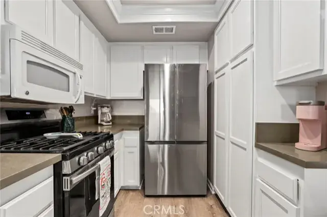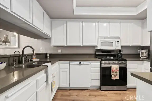Fabulous North Oaks community, first level condo in Thousand Oaks – THREE BEDROOMS/TWO BATHS, approximately 1143 square feet with NO STAIRS. Beautifully updated and move in ready. IN UNIT LAUNDRY. PRIVATE 1 CAR GARAGE (not shared). Newer flooring and paint. Designer touches throughout. Spacious living area with a gorgeous tiled fireplace that opens to a private patio. The remodeled, open kitchen, is highlighted by stone countertops and flows into the dining area. Large primary bedroom suite with two closets, another private patio along with a full ensuite bath. Two additional bedrooms are adjacent to another full bath in the hallway. FHA approved complex. Centrally located near Cal Lutheran University. Wonderful community pool area. TONS of parking. Don’t miss this opportunity!