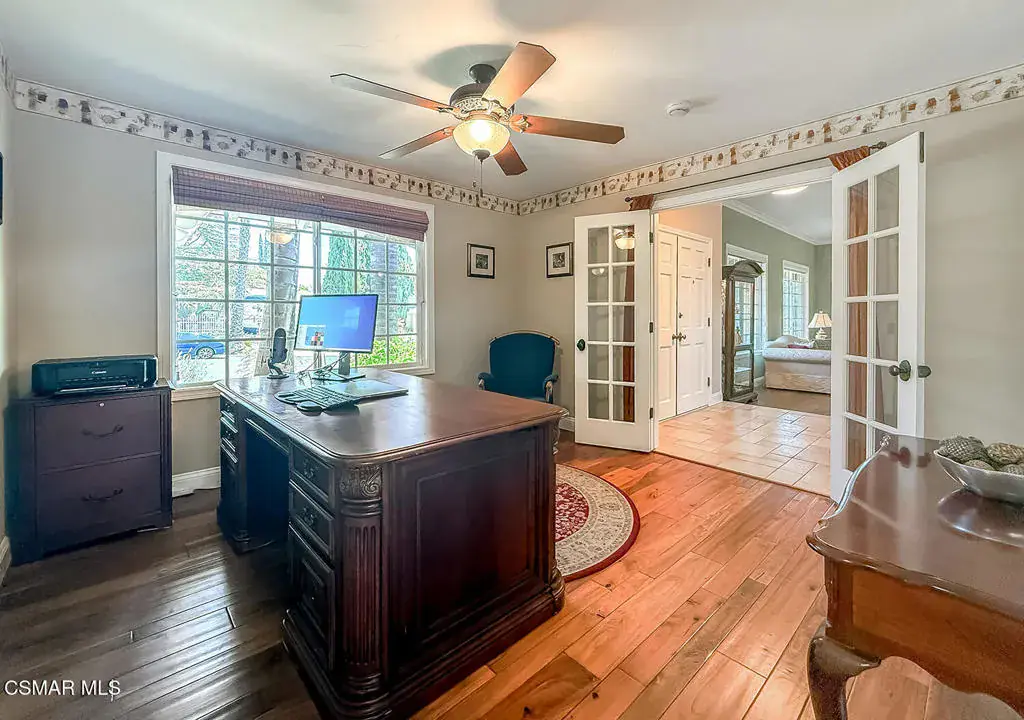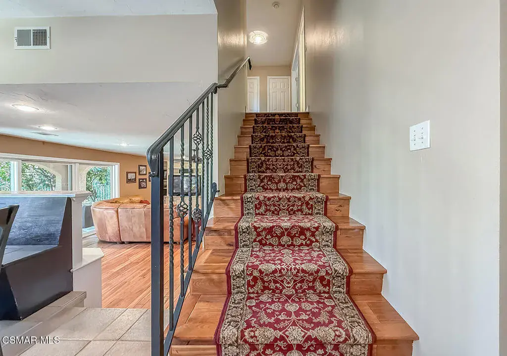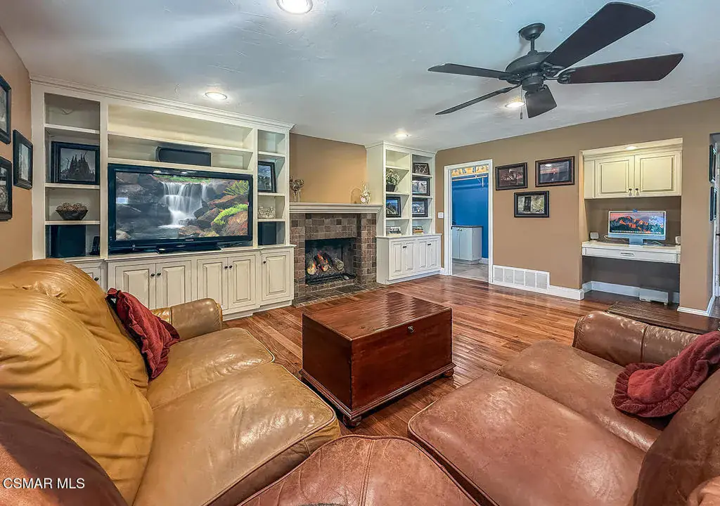 Upgraded & Spacious Santa Barbara Model with a PRIVATE Backyard Oasis in the Heart of Thousand Oaks! Welcome to 167 Siesta Avenue–a rarely available, light-filled Santa Barbara model resting on a quiet, tree-lined street within one of Thousand Oaks’ most desirable neighborhoods. Featuring 4 bedrooms (easily modified to 5 bedrooms), plus loft, and 3 bathrooms, nearly 2,870 square feet of living space, and a sprawling 9,147 square foot lot, this beautifully enhanced residence blends comfort, functionality, and a layout designed for indoor-outdoor living. From the moment you arrive, the curb appeal impresses with lush, mature landscaping, vibrant garden beds, and a graceful walkway leading to the covered front porch–the perfect spot to enjoy a morning coffee beneath the shade of established greenery. Step inside to find a bright, flowing interior adorned with rich WALNUT wood flooring, crown molding, and tall dual-paned mullioned windows that flood the space with natural light. The Living Room creates a warm, elegant atmosphere with its inviting tile-surfaced gas/wood-burning fireplace, while the formal Dining Room exudes charm with wainscoting details and generous windows framing serene backyard views. For those needing flexible space, a downstairs bedroom near the entry offers the ideal work-from-home office, guest suite, or playroom, complete with windowed French doors, built-in closet, and front-facing windows. The adjacent full bathroom includes ceramic tile flooring, a built-in vanity, and standing shower. The heart of the home centers around the Family Room and bright eating nook, both overlooking the private backyard. The Family Room is media-ready with a handsome slate-surfaced fireplace, custom built-ins, and sliders that lead seamlessly outside. The adjoining Kitchen has been beautifully updated with granite countertops, stainless-steel double sink, custom cabinetry, and high-end appliances–including a GAGGENAU gas cooktop + wok burner and GAGGENAU double oven. Upstairs, the private Primary Suite offers TWO closets (including a deep walk-in), a cozy sitting nook, and abundant natural light. The remodeled en-suite bath dazzles with a granite-topped dual sink vanity, a makeup station, and a deep, fully upgraded shower wrapped in glass mosaic accents. Two spacious secondary bedrooms provide ample comfort–one boasting an OVERSIZED layout with the option to convert into two separate bedrooms thanks to dual electrical setups. A versatile loft landing makes for the perfect kids play area, gym, or second office space. Additional highlights include a fully updated hall bath with granite-topped dual sink vanity and a tiled tub/shower, an individual indoor laundry room with storage cabinetry and direct garage access, and a functional 2-car garage with built-in workbench and storage solutions. The backyard is a true PRIVATE retreat, framed by tall greenery and offering sprawling lawns, a substantial covered patio, and plenty of space for a pool or expanded outdoor entertaining area. The wide side yard, complete with 8×10 storage shed, offers incredible flexibility for a workshop, dog run, boat parking, or putting green. This peaceful enclave is prized for its proximity to Thousand Oaks’ best amenities, including the renowned Wildwood Regional Park with miles of hiking and biking trails, public tennis courts, playgrounds, and sports fields. Top-rated schools–Aspen Elementary, Redwood Middle, and Thousand Oaks High–are all nearby, along with convenient shopping, dining, and quick access to the 101 and 23 freeways. Thousand Oaks is celebrated for its mild Mediterranean climate, year-round outdoor lifestyle, and abundant open space–experience the best of it all at Siesta Avenue!