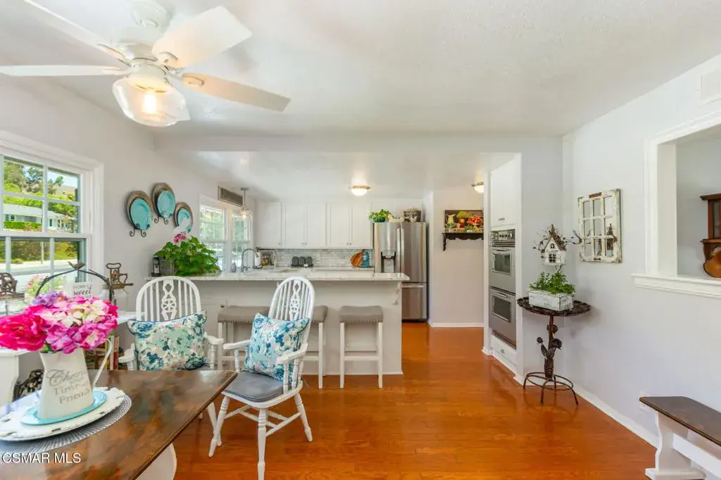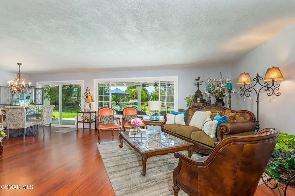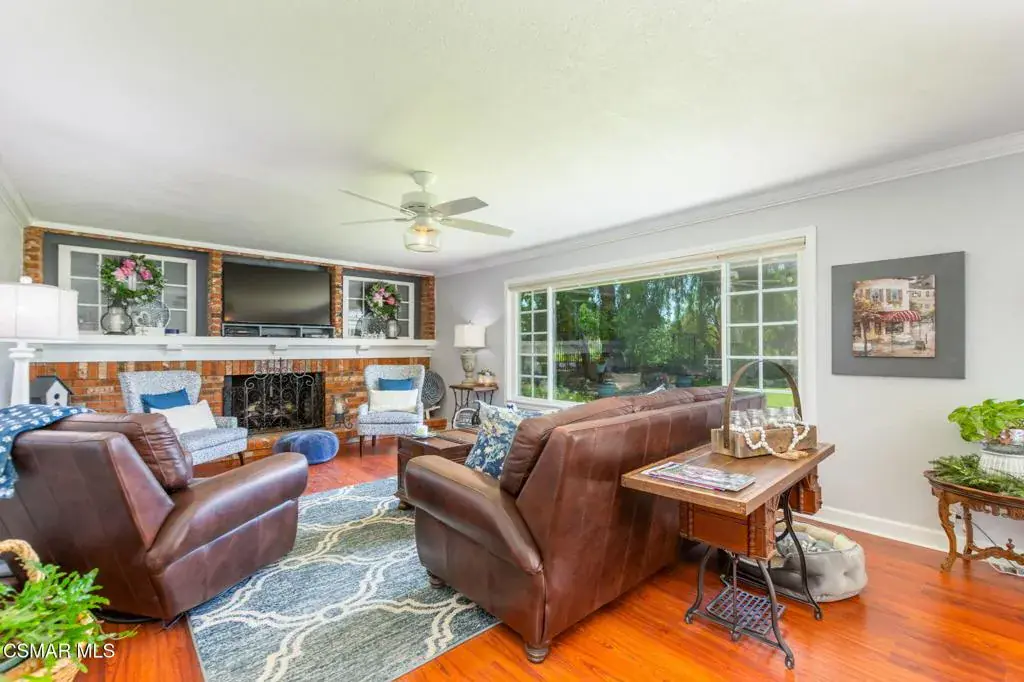 Welcome to this spectacular single level plan C model, in the coveted Kevington neighborhood of Thousand Oaks. This home offers, 4 bedrooms, 2.5 bathrooms, approx. 2,515 sq. ft of living space and situated on approx. 16,552 sq. ft lot with views. Great spacious floorplan offering remodeled chef’s kitchen with adjacent eating area and breakfast bar.Large living room, separate dining room, huge family room with brick fireplace, wood mantle and a highlighted picture window looking out to the backyard. Some of the upgrades include dual pane windows & smooth ceilings. Concrete tile roof, York HVAC system & interior/exterior paint completed in 2020. All 4 bedrooms are at the far wing of the home. The large lot has tons of possibilities. Backyard offers large concrete patio with covered porch perfect for entertaining. Two car garage with direct access. Excellent central location within close proximity to top rated schools, parks, shopping, restaurants and hiking trails.