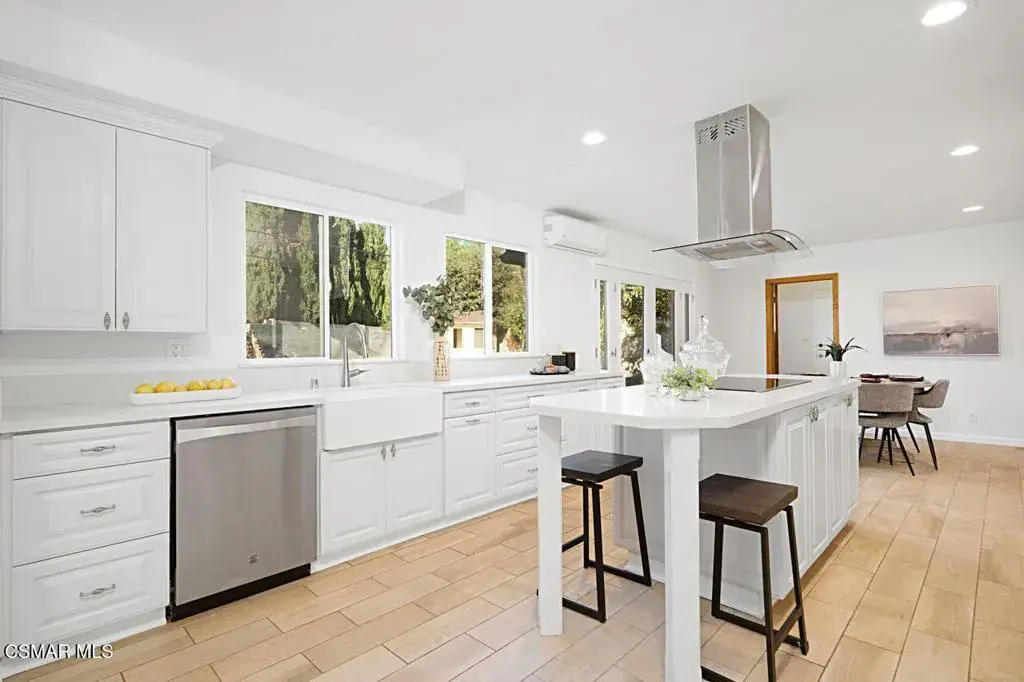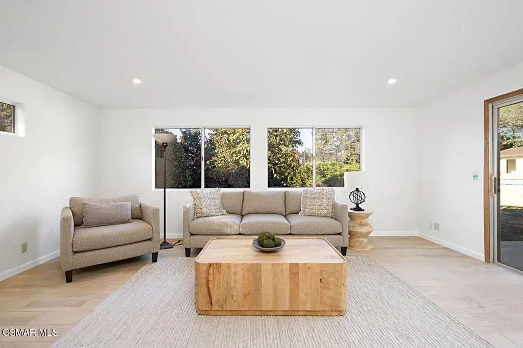 Beautiful 4-bedroom, 3-bath corner pool home set on an expansive 17,000+ sq ft lot. Located in a wonderful neighborhood, this property offers exceptional space, privacy, and potential. The parklike grounds feature mature fruit trees, and a long driveway with ample parking–plus room to add an ADU, RV, boat, or more.Inside, the home showcases wood‑like ceramic tile flooring, a bright living room with a stack‑stone fireplace, and a flexible family room ideal for an art studio, reading nook, or dining area. The remodeled chef’s kitchen includes quartz counters, soft‑close cabinetry, a center island, farmhouse sink, and stainless steel appliances.A downstairs bedroom and full bath provide convenient main‑level living. Upstairs, the light‑filled primary suite offers a private deck, generous closets, and an ensuite bath. Two additional bedrooms share a beautifully updated full bath. A large laundry room with outdoor access leads to the expansive backyard.Enjoy true California living with a sparkling pool, patios, and abundant space to entertain or unwind. No HOA. Close to Old Meadows Park, Conejo Creek Park, the Goebel Center, Thousand Oaks Teen Center, and the Thousand Oaks Library.A rare opportunity to own a spacious, versatile property in a prime Thousand Oaks location.