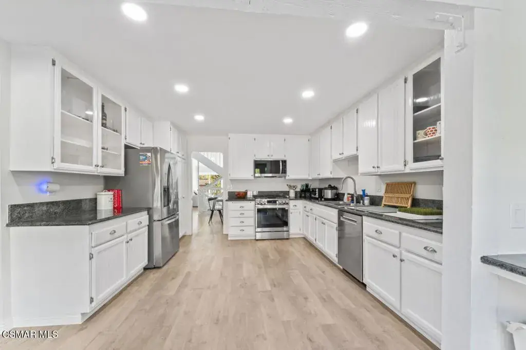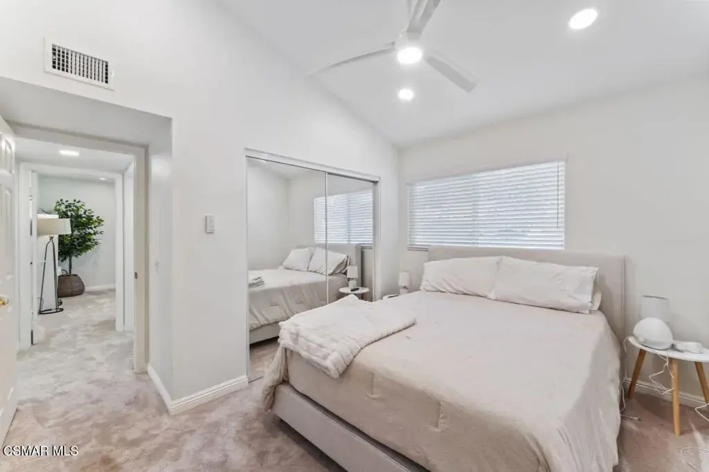 Welcome to a home that feels as timeless as it is inviting. Tucked gently into the sought-after Racquet Club Villas community of Thousand Oaks, this spacious 4-bedroom townhouse isn’t just a place to live. It’s a place to settle in, to grow into, to savor. With one of the largest floor plans in the community, offering over 2,250 square feet, there’s room for everyone and every lifestyle.Step inside and you’re greeted by soaring ceilings and sunlight pouring through expansive windows and sliding doors. The main living area exudes warmth, where evenings are spent by the glow of the gas fireplace and mornings are greeted with sweeping hillside views from the balcony. Here, watching sunsets becomes part of your daily rhythm.The open-concept layout flows effortlessly into the dining room and bar area, making this home an entertainer’s dream. Just beyond, the beautifully appointed kitchen is the true heart of the home. Complete with gleaming granite countertops, stainless steel appliances, and elegant cabinetry including glass display uppers, it invites gathering, conversation, cooking, and connection. French doors off the kitchen welcome the morning light and open to a private rear patio, perfect for al fresco meals, weekend grilling, or quiet moments of reflection.The primary suite, located on the main level, is a serene retreat. Wake up to treetop views, step outside onto the balcony for fresh air, and enjoy the convenience of dual closets and your own ensuite bath. A cozy den off the kitchen opens to the back patio as well, creating a perfectly tucked-away lounge for movie nights or game evenings.Upstairs, two additional bright and comfortable bedrooms share a well-lit bathroom, ideal for family, guests, or a dedicated workspace.Additional features include: newer windows throughout, indoor laundry room, a private two-car garage with extra storage, and newer wood-like flooring that ties the main level together with warmth and style.And then, of course, there’s the location: Thousand Oaks living at its finest. Nestled minutes from parks, hiking trails, shopping, restaurants, and top-rated schools, this home offers the balance of tranquility and convenience that makes this community so cherished.More than a home this is where life unfolds beautifully.Welcome to Racquet Club Villas.