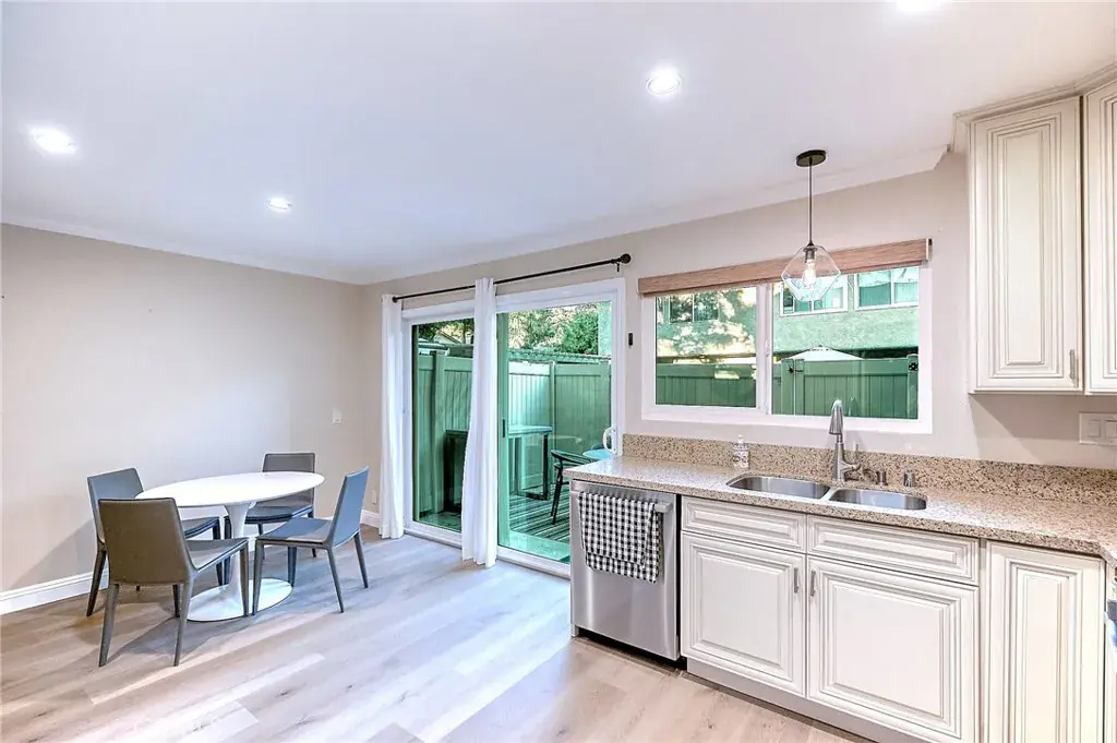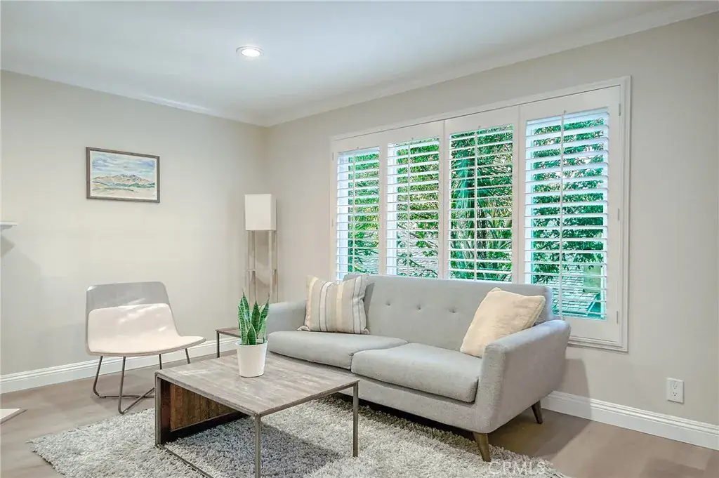 Additional upgrades include dual-pane windows, plantation shutters, new custom shade in the kitchen, and a nearly new central HVAC system (1 year old). The private patio is ideal for hosting and relaxing, with direct access to 1 covered parking spots, 1 uncovered parking space newer vinyl fencing, and a storage shed for added utility.
