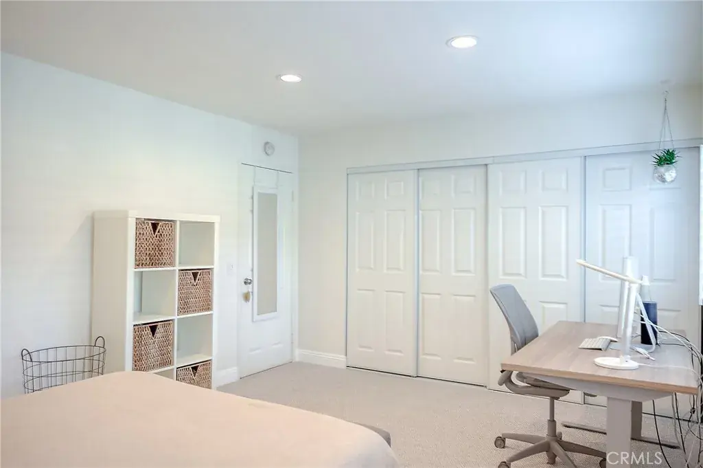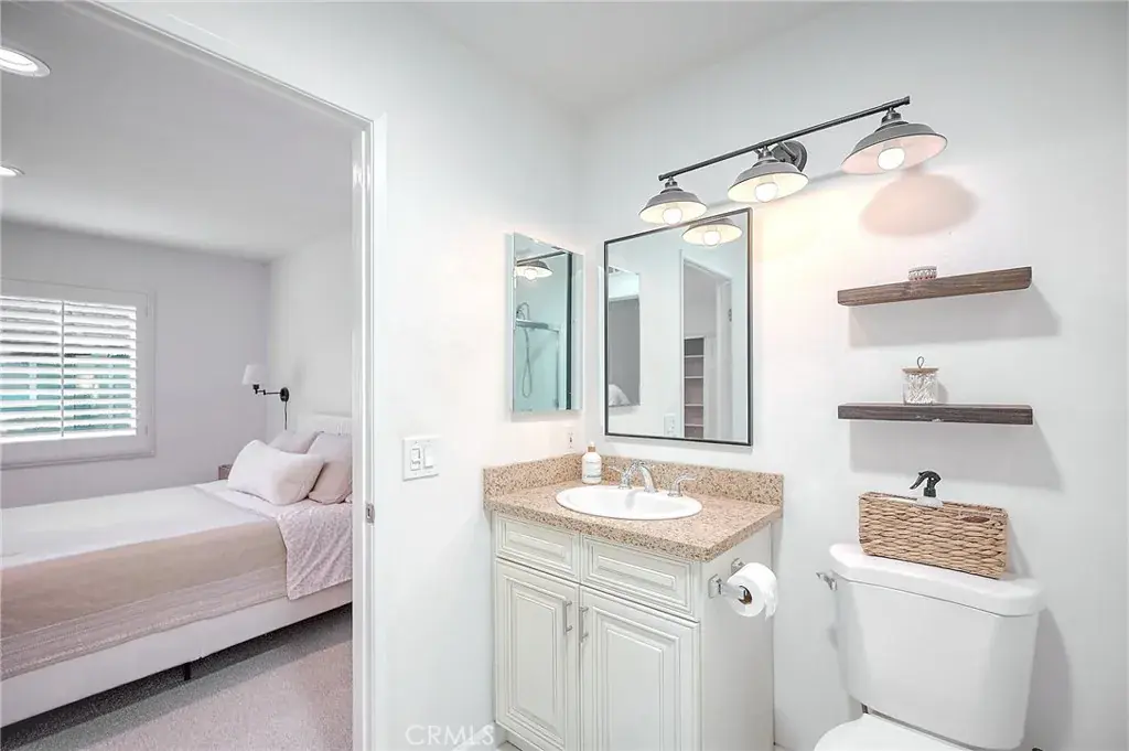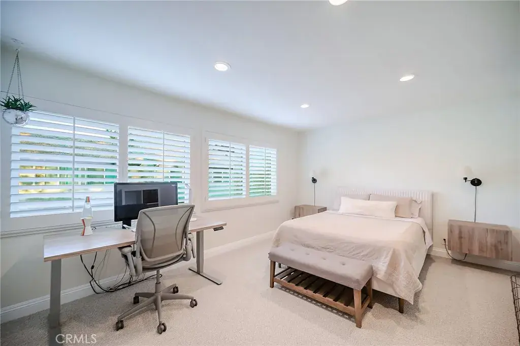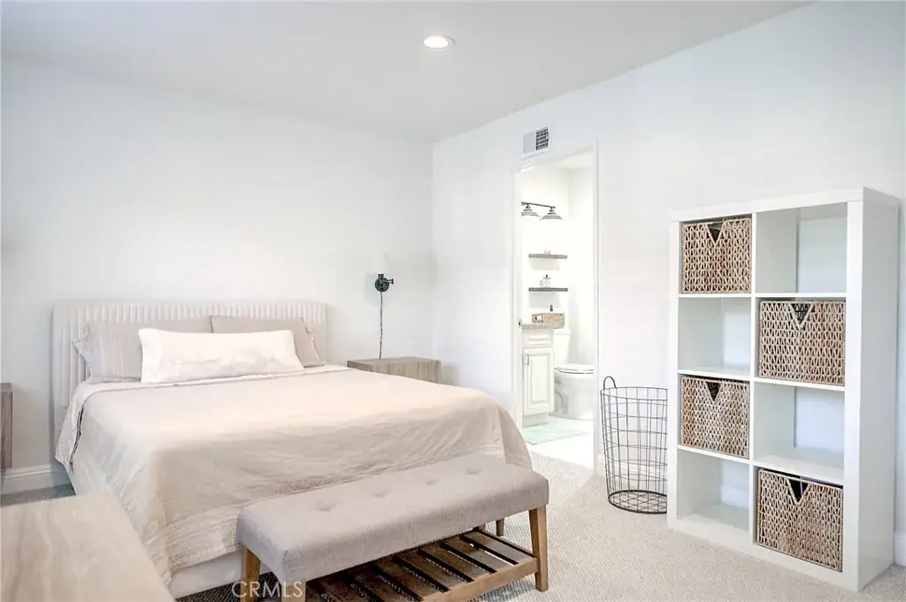 Upstairs, you’ll find two generously sized bedrooms—each offering excellent storage, updated carpet, and clean finishes. One bedroom includes attic access and a third large closet with a separate vanity area. The full bathroom has been refreshed with modern tile flooring and a clean, timeless design.
