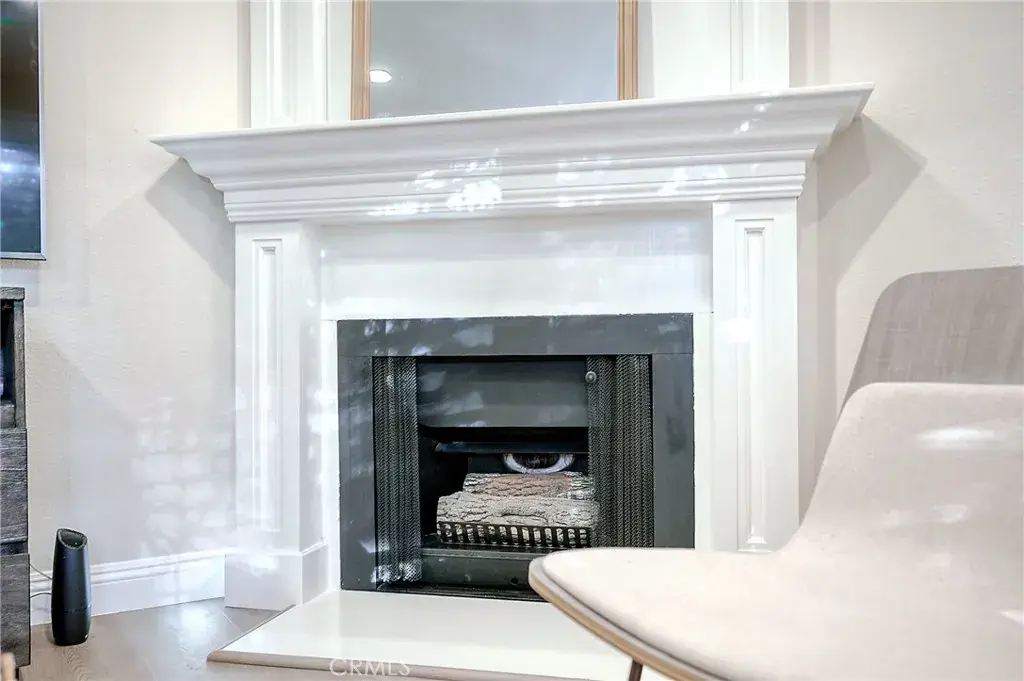 The bright, spacious living room welcomes you with a custom fireplace—beautifully clad and framed by a tailored hearth and mantel—creating a true focal point. Wide plank laminate wood flooring flows throughout the first level, complemented by fresh paint and upgraded baseboards. The kitchen is equally impressive, featuring quartz countertops, newer cabinetry, and high-end stainless steel appliances—including a brand-new Bosch 800 Series dishwasher (used once, $1,500). A separate indoor laundry room and a downstairs powder bath complete the first floor.